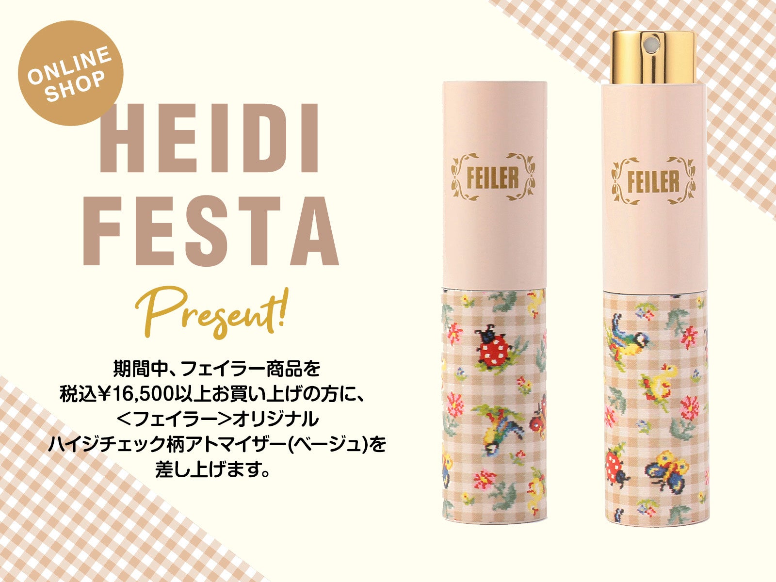 ※アトマイザーの柄は、フェイラー銀座本店、フェイラー天神地下街店、全国有名百貨店フェイラーショップでは『ハイジチェック』柄のペールグリーン、フェイラー公式オンラインショップでは『ハイジチェック』柄のベージュとなります。