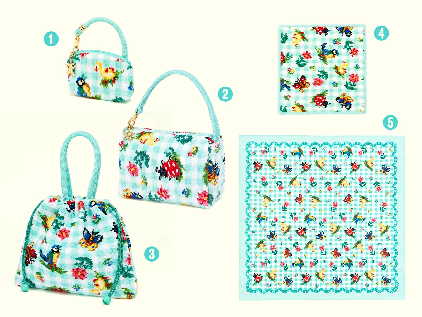 ②「ハイジチェック」手付きポーチ 約 11×17×7cm(ペールグリーン)¥9,900(税込)