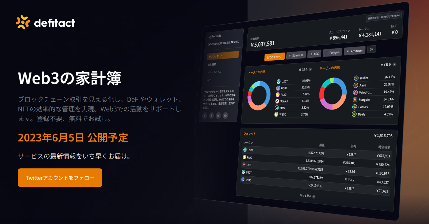 株式会社pafin、DeFiなどブロックチェーンの取引を可視化するWeb3の家計簿「defitact」を6月5日に正式リリース