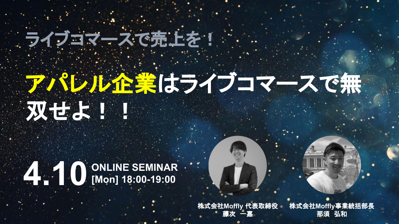 【株式会社Moffly】無料オンラインセミナー第二弾「アパレル企業はライブコマースで無双せよ!」を4月10日(月)18:00〜19:00にて開催