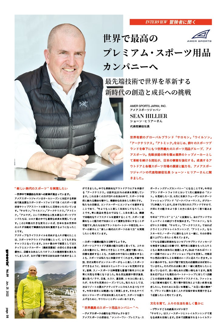 「groovin’」スポーツライフスタイルマガジンでは、新しい時代に挑戦を続ける皆さんにインタビューを行っています。今夏号では「世界で最高のプレミアム・スポーツ用品カンパニー」に挑む アメアスポーツジャパンのショーン・ヒリアー社長インタビューを掲載しています。