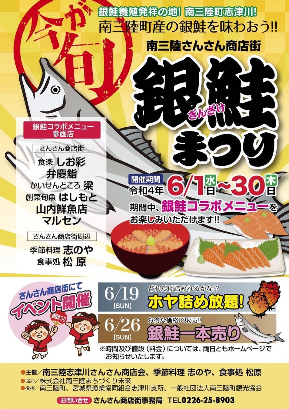 主催:南三陸志津川さんさん商店会、季節料理志のや、食事処松原