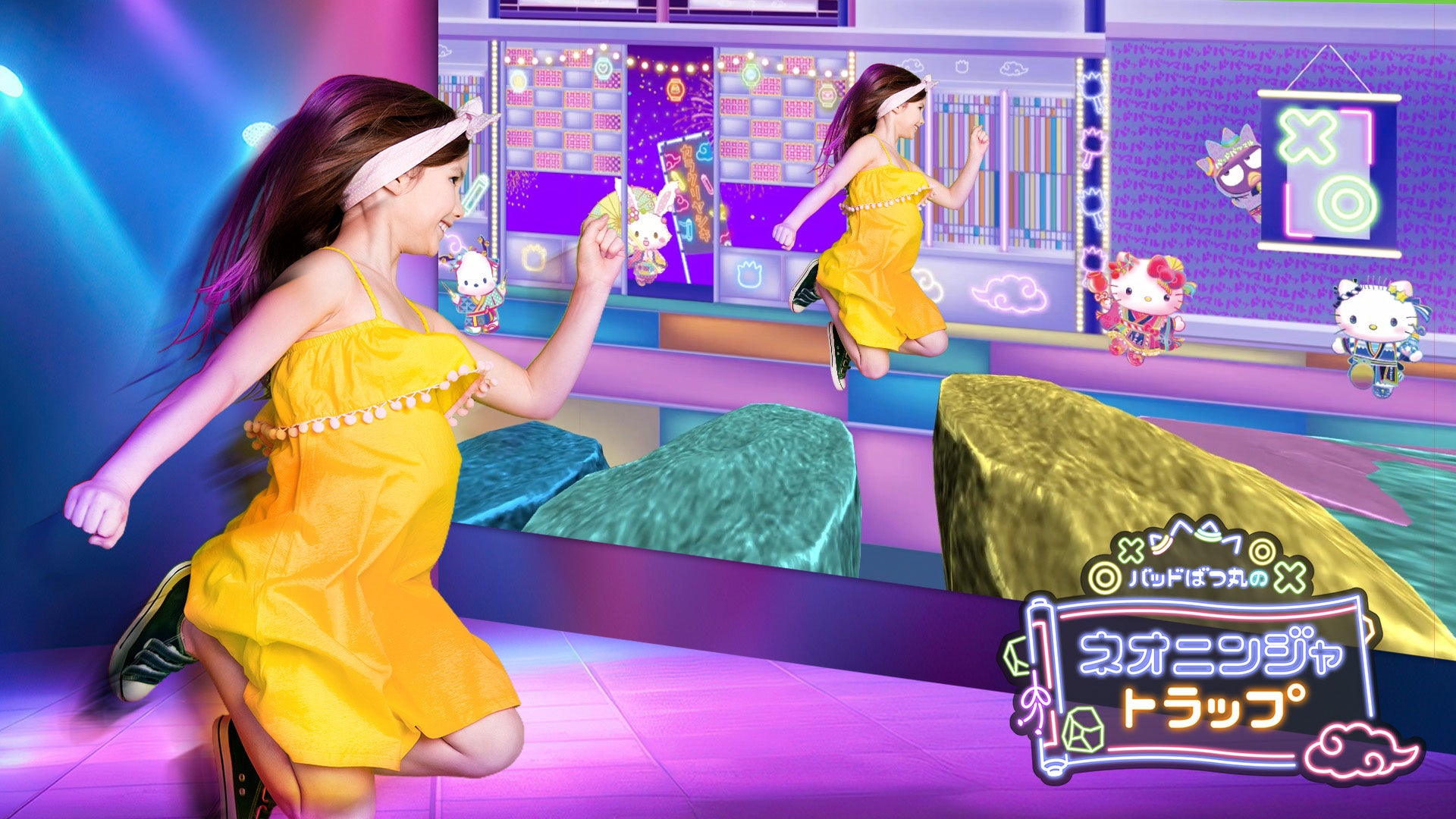 バッドばつ丸のネオカラクリヤシキは、「バッドばつ丸のネオニンジャトラップ」と「バッドばつ丸のネオハナビスマッシュ」の2種のインタラクティブアトラクションで構成されており、それぞれジャンプしてトラップを回避したり、花火玉を投げて花火を上げたりと、体を動かして楽しむアトラクションです。ネオニンジャになりきってチャレンジしてください!体験者にはオリジナルアクリルスタンドと”忍”定証がプレゼントされます。