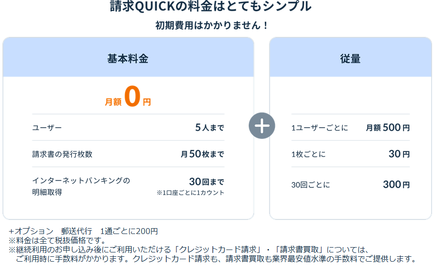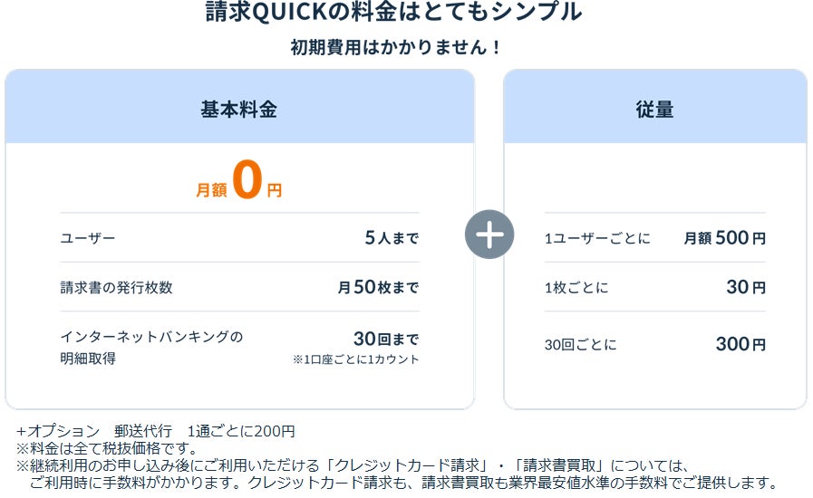 <「請求QUICK」料金表 >