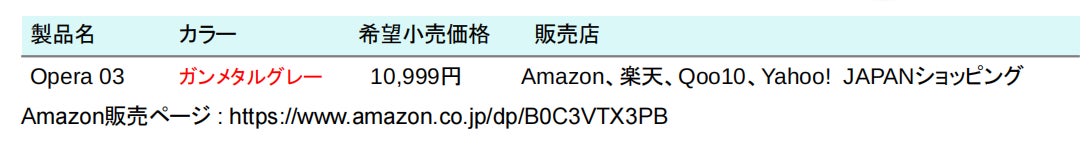 バランスドアーマチュアドライバーが1基少なく、イヤホン本体および充電ケースの色が異なること以外、Opera 05と共通の設計/スペックを持つ完全ワイヤレスイヤホンです。イヤホン本体で9時間、充電ケースを併用すれば最長33時間というロングラン再生のほか、4基搭載のマイクを駆使した通話用の環境ノイズキャンセリング/ENCにも対応します。VGP 2023 SUMMERでは「Bluetooth完全ワイヤレスイヤホン/ノイズキャンセリング(1万円以上1.2万円未満)」部門で金賞を受賞しました。