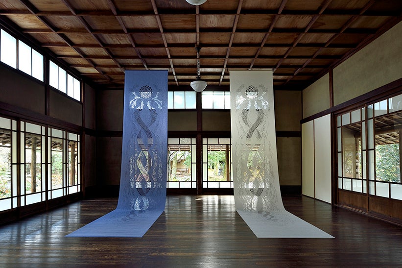 一枚の紙を刻んで生まれる切り絵特有の緊張感のある透過美を活かし、寺院や茶室といった伝統建築における大型のインスタレーション作品を多く手掛ける。テーマは古今東西の神話や思想。京都を拠点に歴史遺産を学び、人間の普遍の精神性を現代作品をして再創出する。また、素材への関心から国内外の紙漉きの取材を続けている。