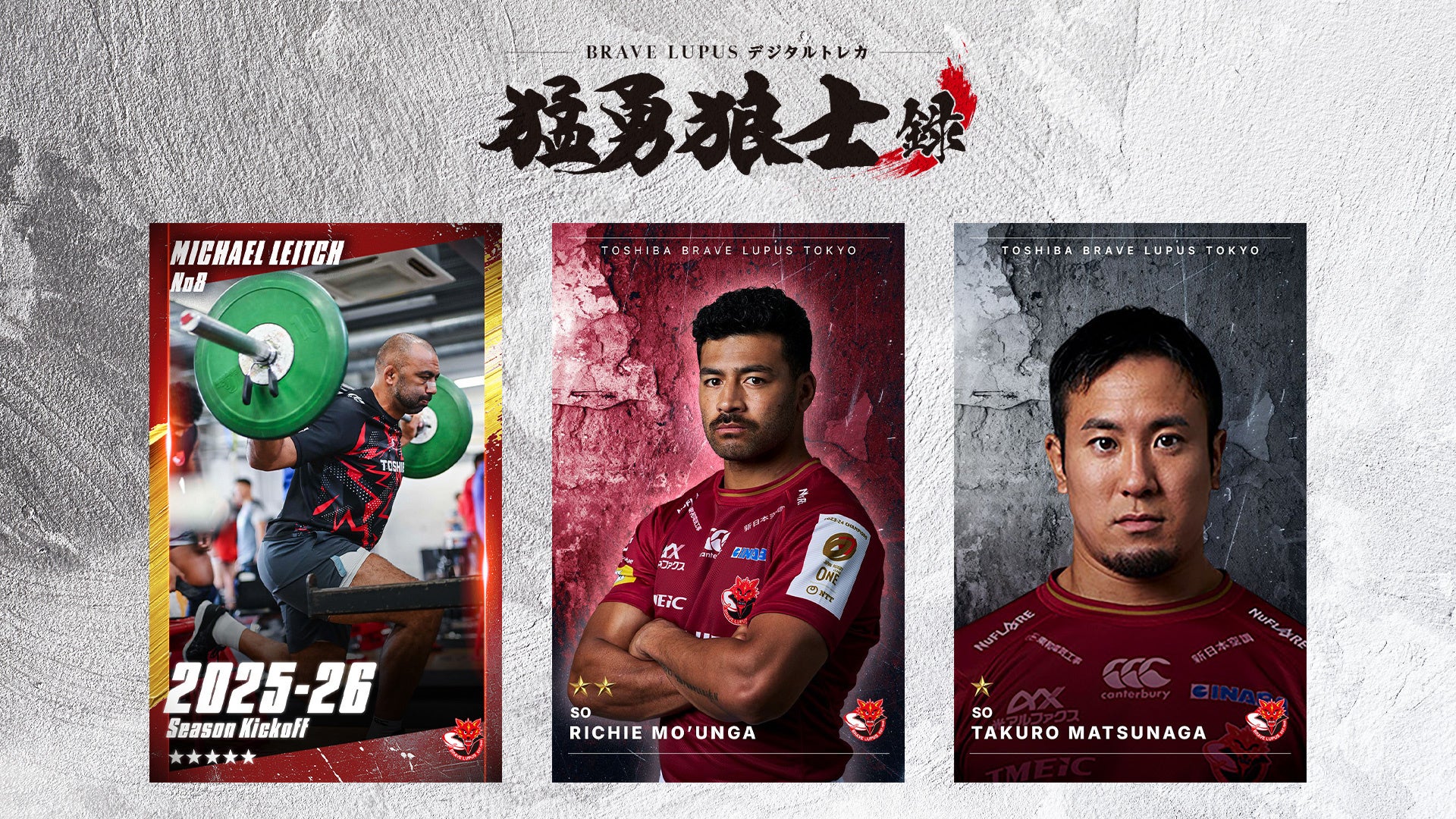 「BRAVE LUPUS デジタルトレカ ー猛勇狼士録ー」では、東芝ブレイブルーパス東京所属選手達の魅力を余すところなく詰め込んだトレカを手に入れる事ができます。