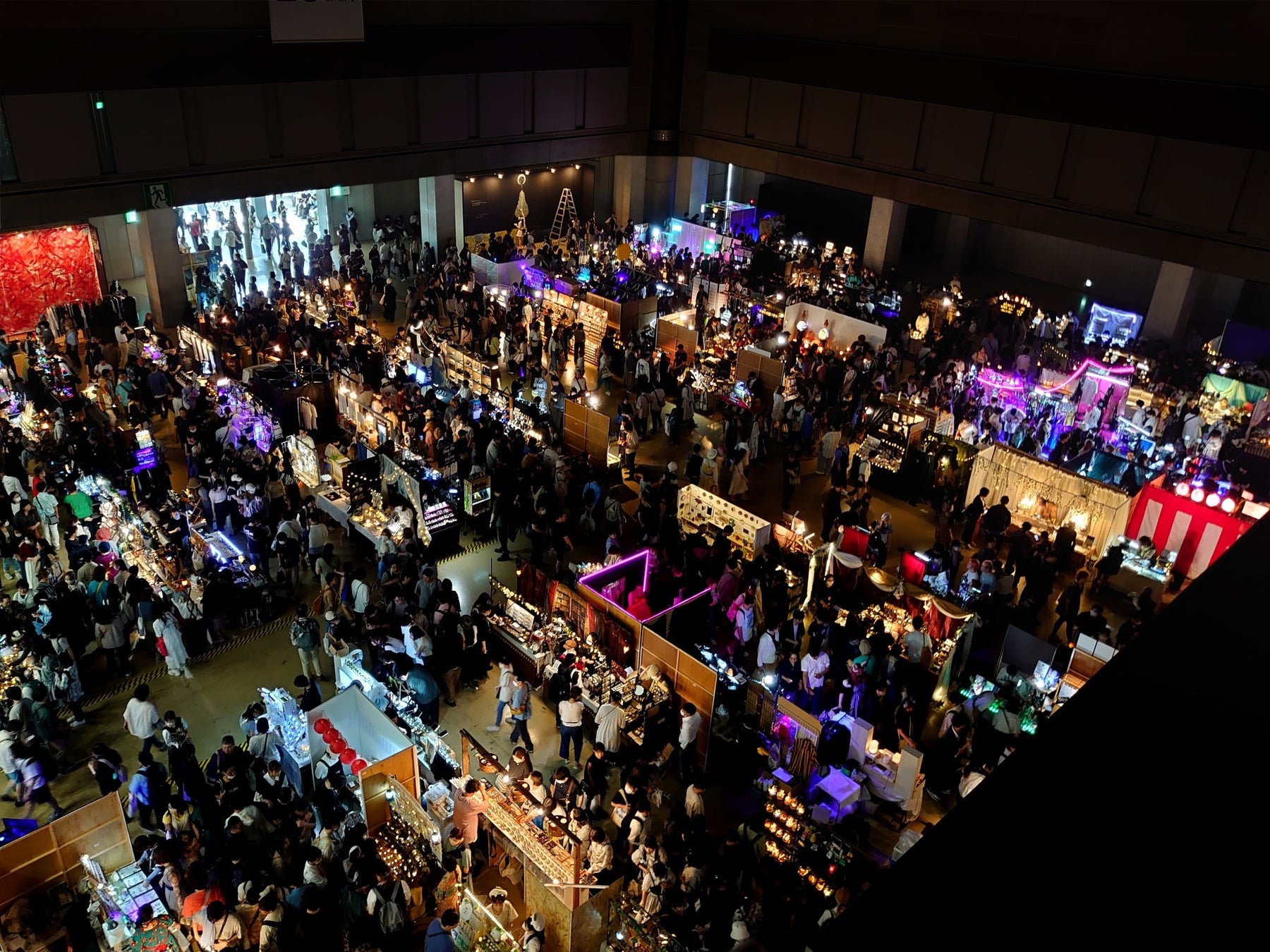 会場の照明を落としたブースには、S・Mの2種類のサイズがあります。映像作品や照明を効果的に使用した表現が集結します。