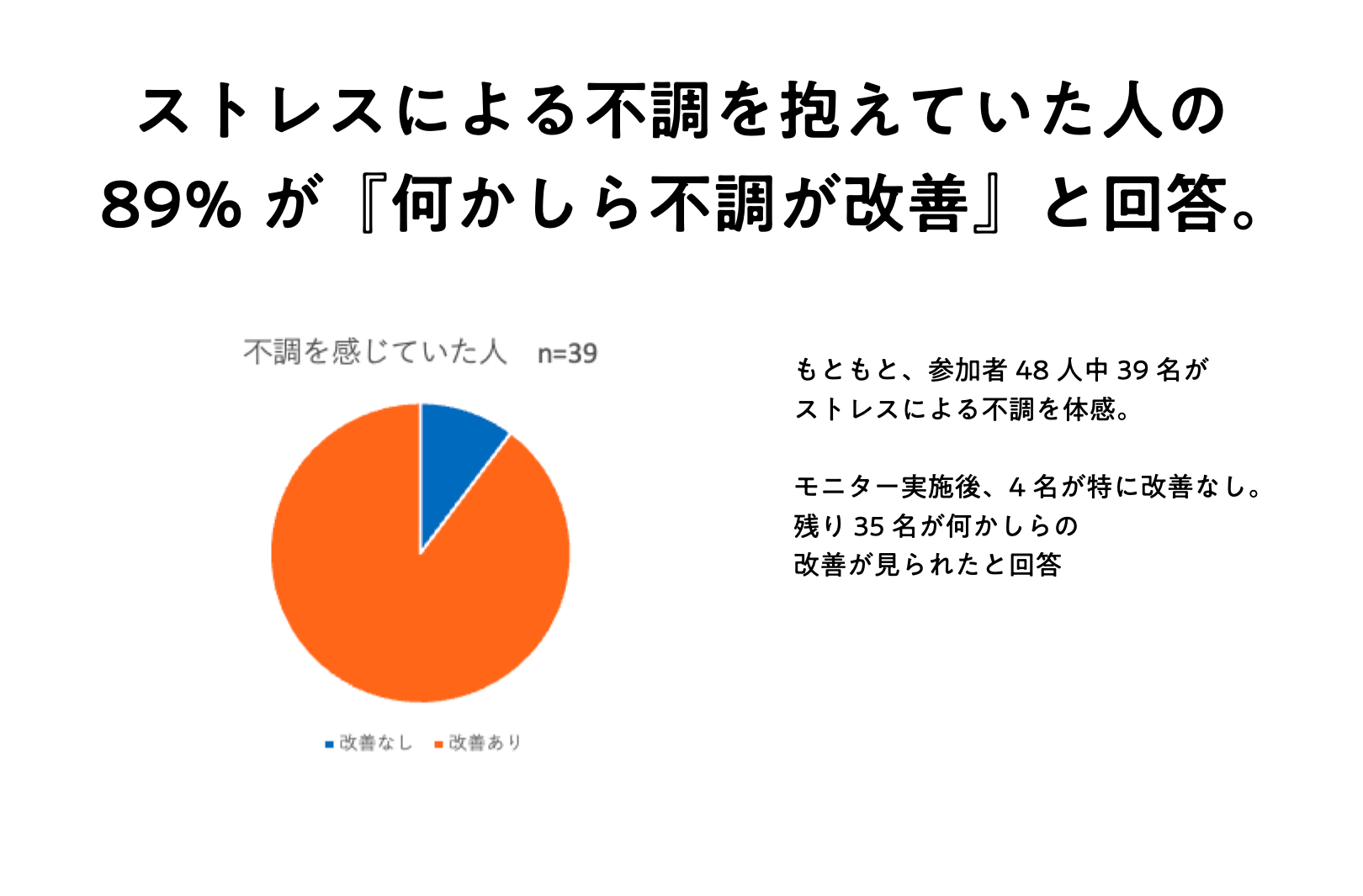 ・ストレスによる不調を抱えていた人の 89% が『何かしら不調が改善』と回答
