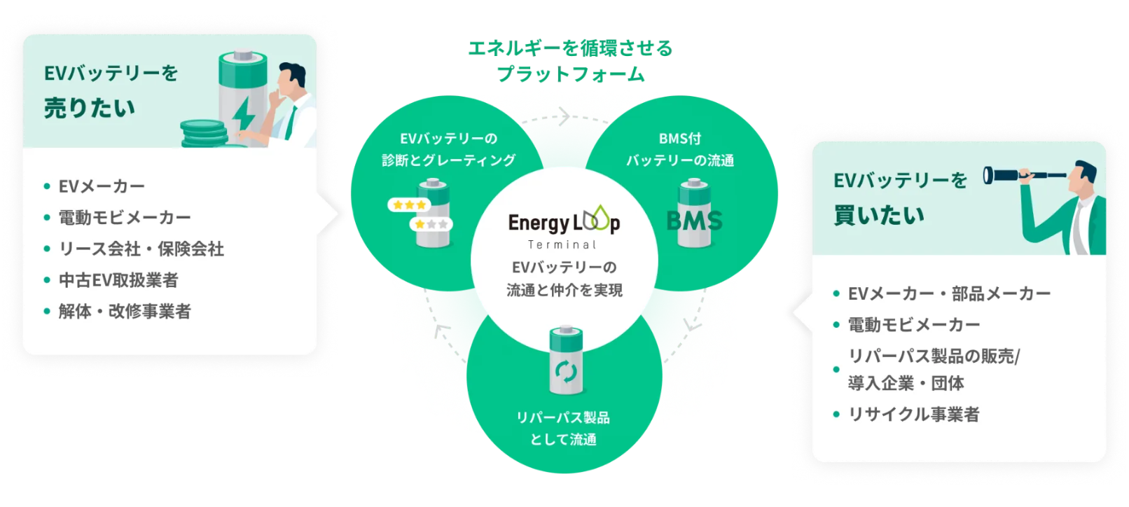 本サービスは、株式会社オークネットが運用する、使用済みEVバッテリーを活用したリパーパス製品の流通プラットフォーム「Energy Loop Terminal」にて、申込みが可能です。