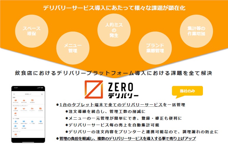 次世代型クラウドサービス「ZEROレジ」、複数のフードデリバリーサービスを一括管理する「ZEROデリバリー」の提供を開始!