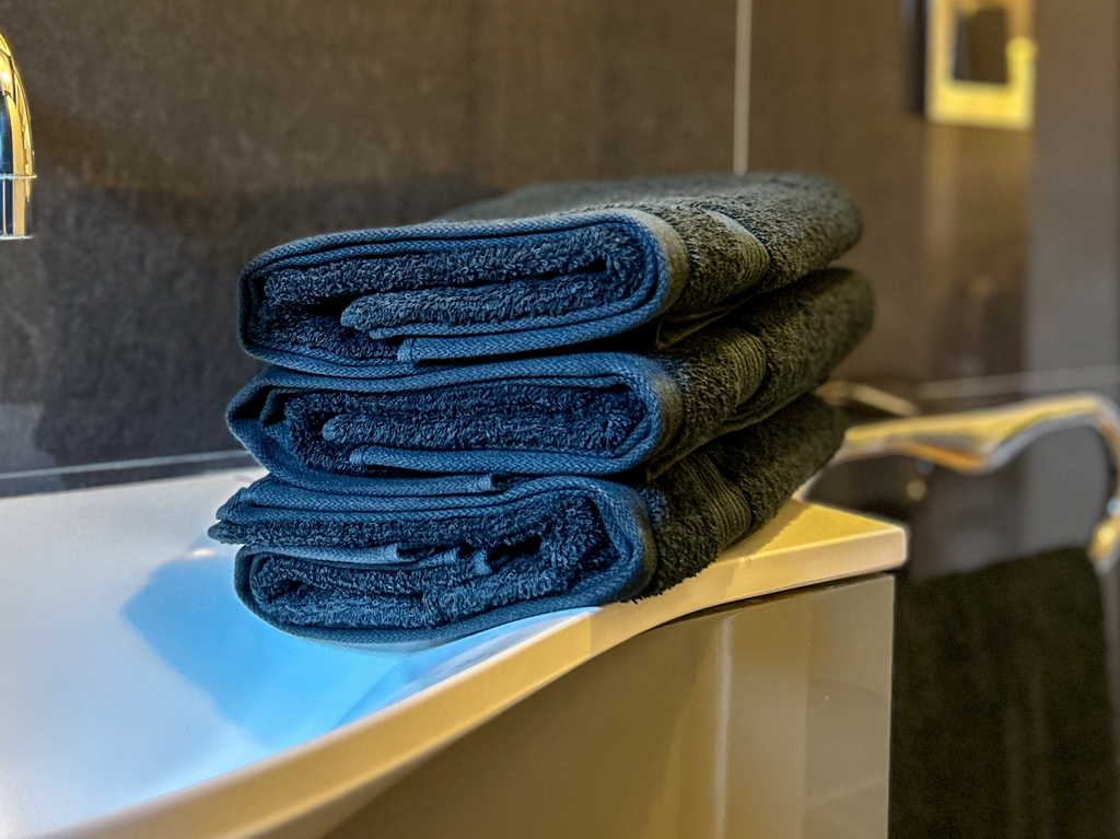 豊かな黒が特徴のこのタオルは、繊維の段階で原液着色技術により染色されており、黒色の顔料が直接繊維に練り込まれています。この独自のプロセスは、エネルギーと水の使用量を50%削減し[3]、染色後のすすぎを必要としないため、従来の染色方法と比較して炭素排出量を60%削減できます[3]。このプロセスはまた、繰り返し洗っても[4]色の濃さを保つのに役立ち、ニキビクリームのように物質との接触によるシミの形成を軽減できます。また、染色の定着力が高いため、洗濯の過程で黒色が他の衣類に色移りする心配がありません。特に、このコレクションのジムタオルとビーチタオルは、家庭用水道水やプールの塩素にさらされることによる変色や生地へのダメージを最小限に抑える耐塩素性を備えています。これにより、タオルの色と品質を長く保つことができ、頻繁に交換しなくてすむようになります。