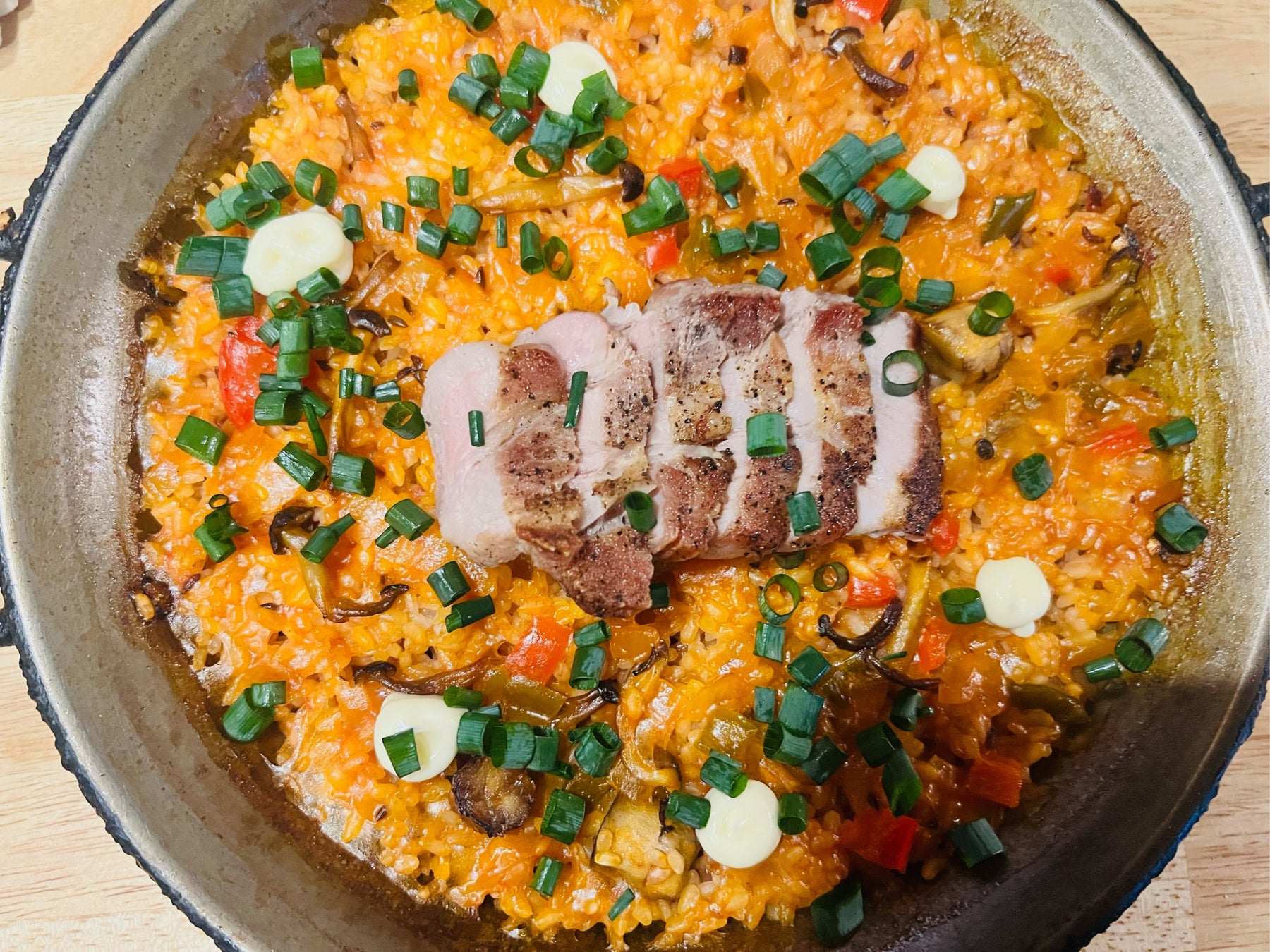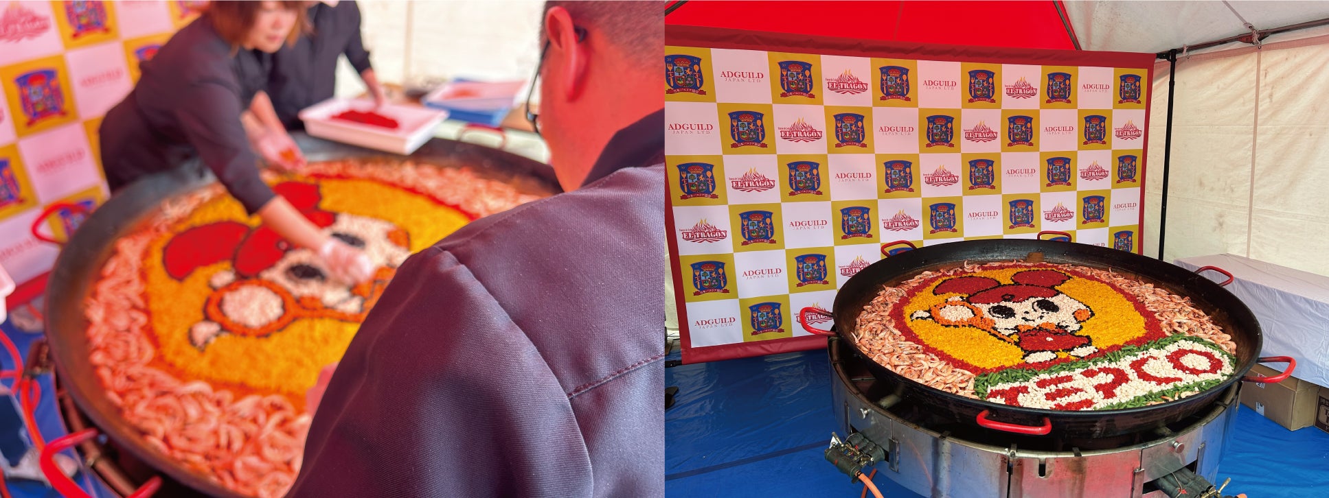 パエリア・タパス祭り実行委員会事務局長、日本パエリア協会理事を務める、エルトラゴンの栗原靖武オーナーシェフによる大鍋パエリアを実施。直径1.5mの大鍋で1度に最大250人前を炊き上げる姿は圧巻です。発見!ふくしまコラボとして、”常磐もの”のアンコウを使用します。また、公式キャラクターの「めっけちゃん」パプリカやインゲンなどで飾る"パエリアアート"も披露します。