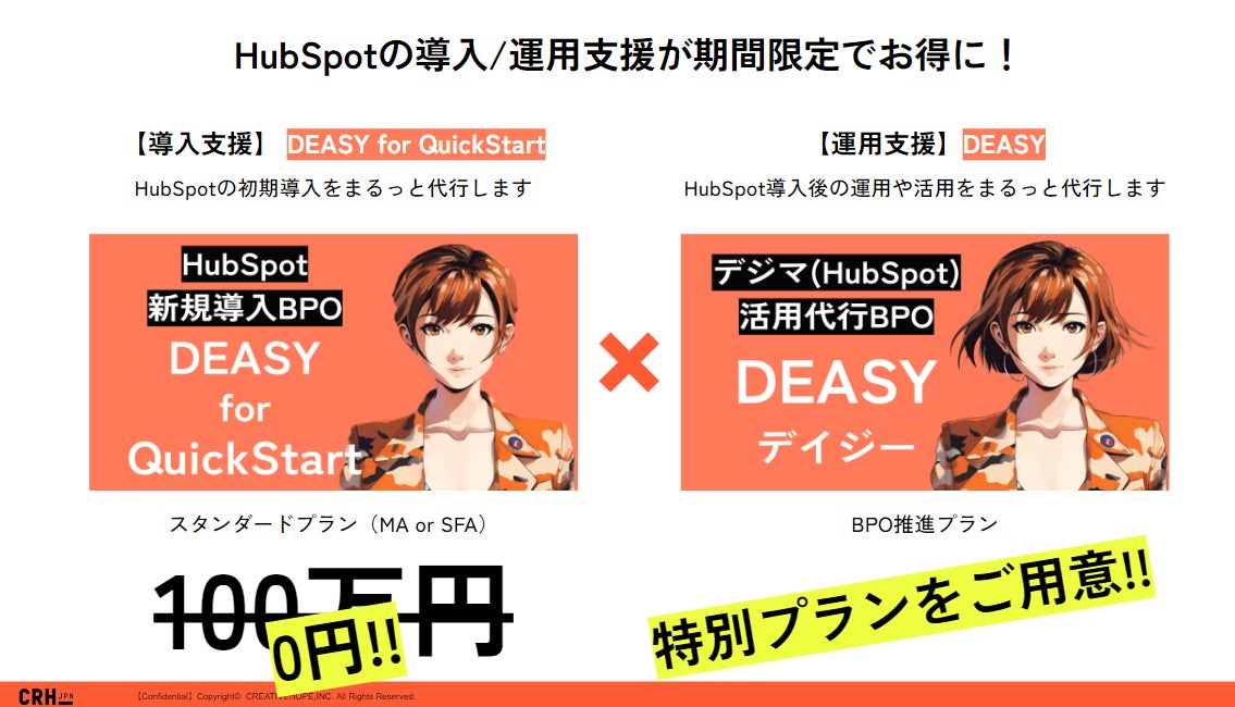 内容: HubSpot初期設定代行「デイジー for QuickStart」サービスを0円で提供(通常100万円相当)