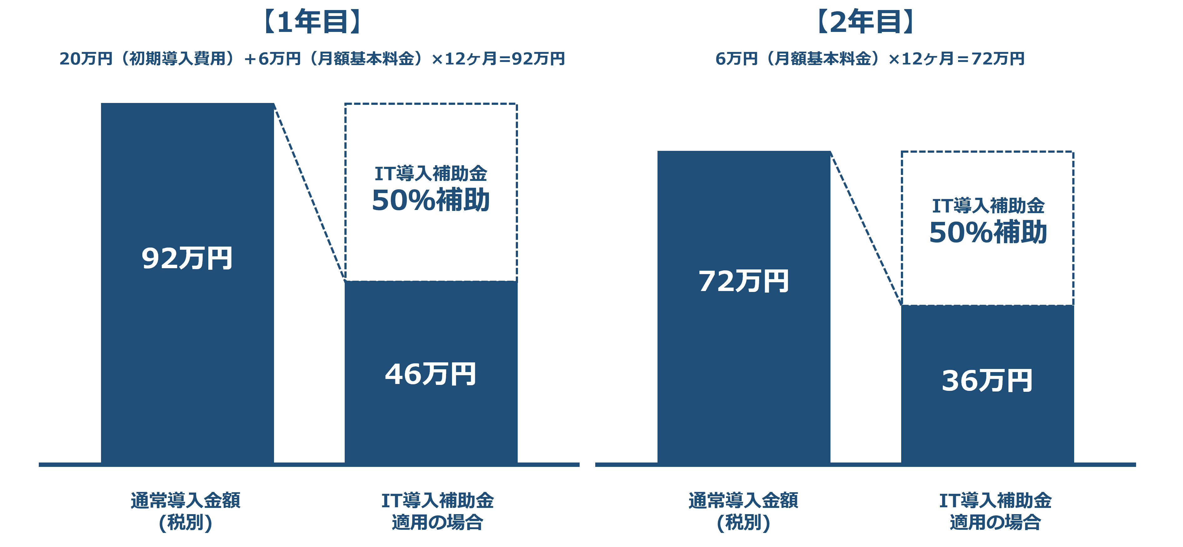補助金申請が承認されましたら、最大2年間、50%の金額でご利用いただくことができます。