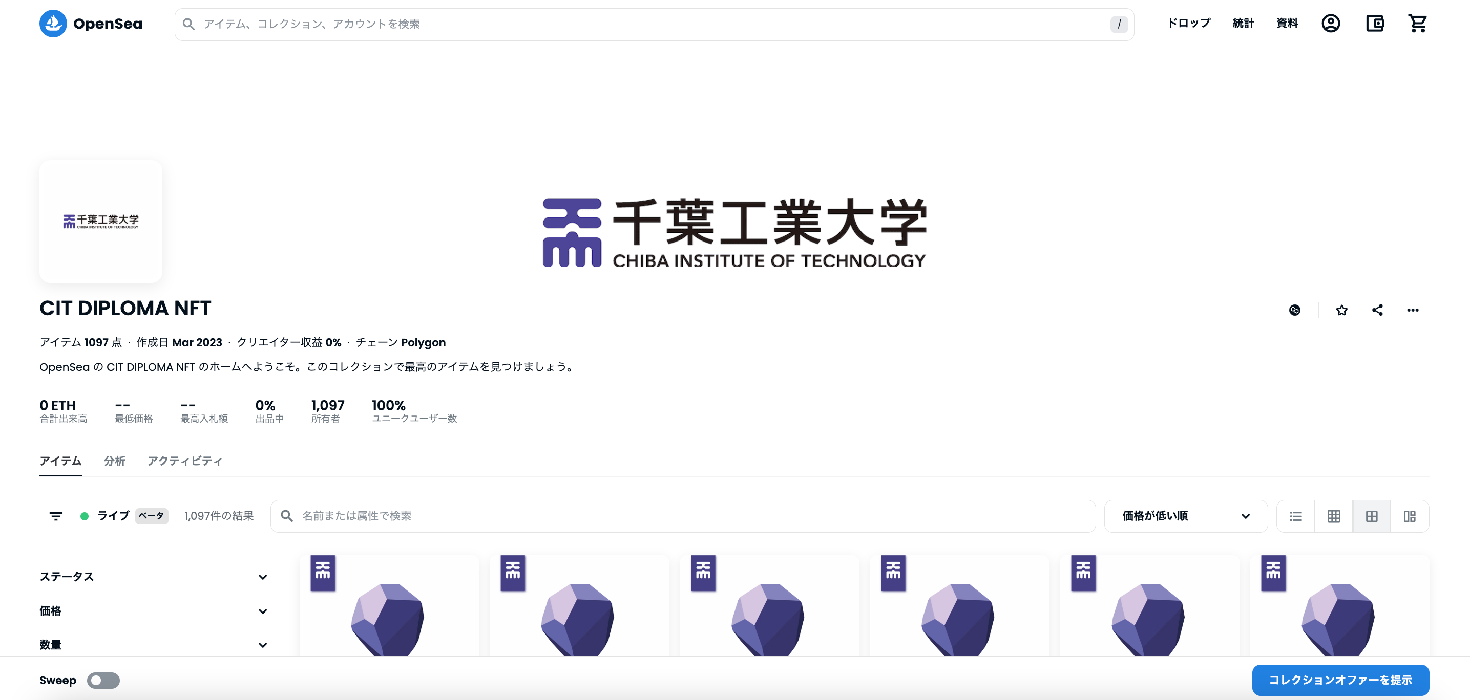 本NFT学位証明書のデザインは卒業生がウォレットを接続するweb3上のあらゆる場所で表示されるため、デザインそのものが「CITの学生である」ことを表している点にとてもワクワクしています。NFT学位証明書を発行した国内初の大学として、そのNFTのデザインがCITのデザインであることを誇りに思います。