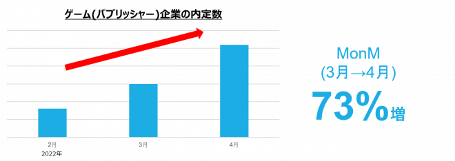 - ゲームパブリッシャーでの内定が好調、来期のリリースに向けて増員