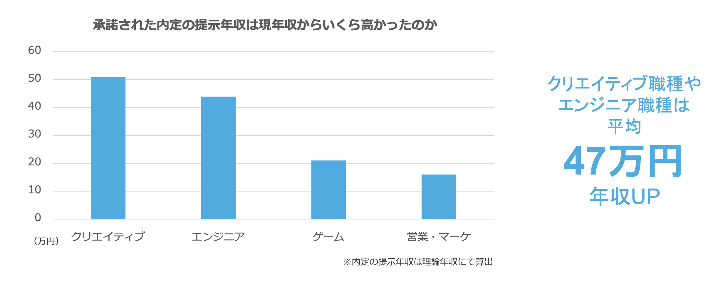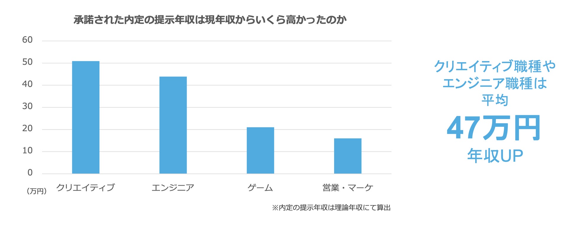 - クリエイティブ職種、エンジニア職種は現年収47万円アップが相場