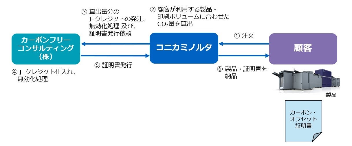3. コニカミノルタジャパンがカーボンフリーコンサルティング株式会社にJ-クレジットを発注し、製品のカーボン・オフセットを実施。