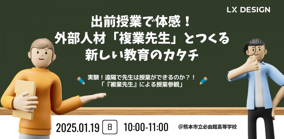 当社は、『Kumamoto Education Week2025』期間中の1月19日(日)10:00より、熊本市必由館高等学校にて、『複業先生®︎』による模擬授業「出前授業で体感!外部人材「複業先生」とつくる新しい教育のカタチ」を開催します。