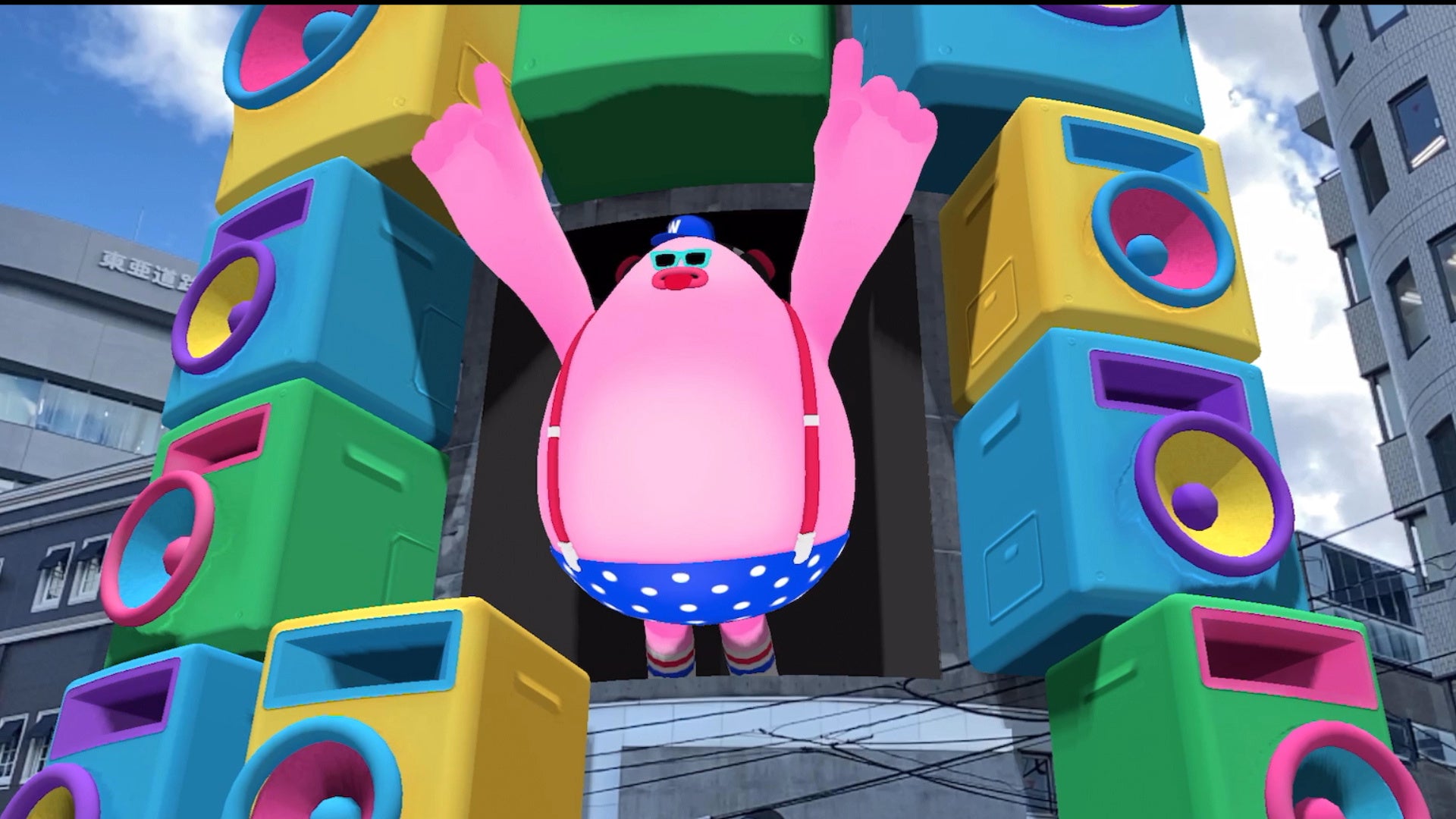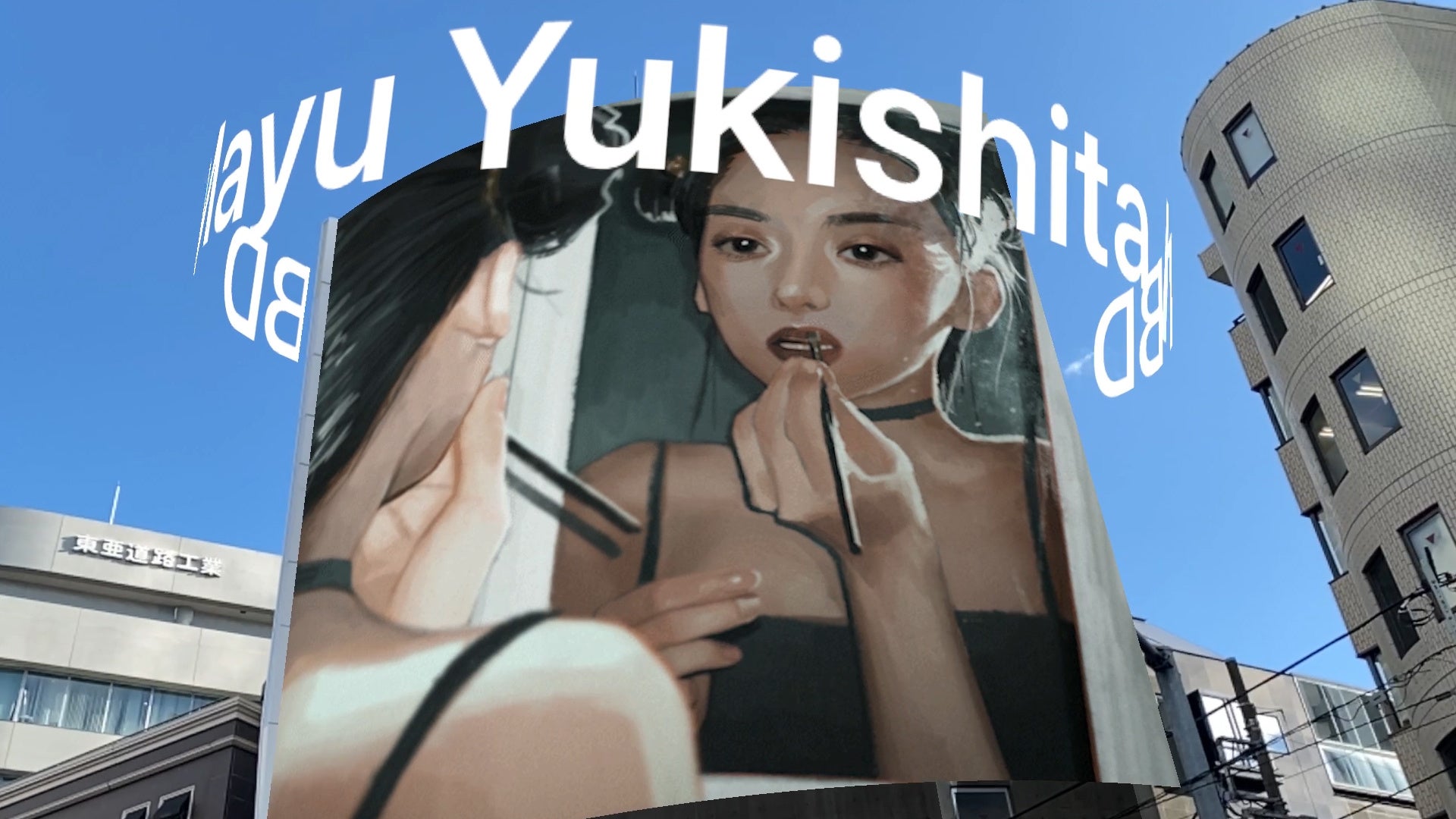 本ミュージアムのシンボルをダイナミックに使用した作品。塗装されたロゴがビルから抜け出し、実態感のある浮遊物として拡張。2Dと3D、仮想と現実を自由に行き交うARタイポグラフィが非現実な風景を作りだします。