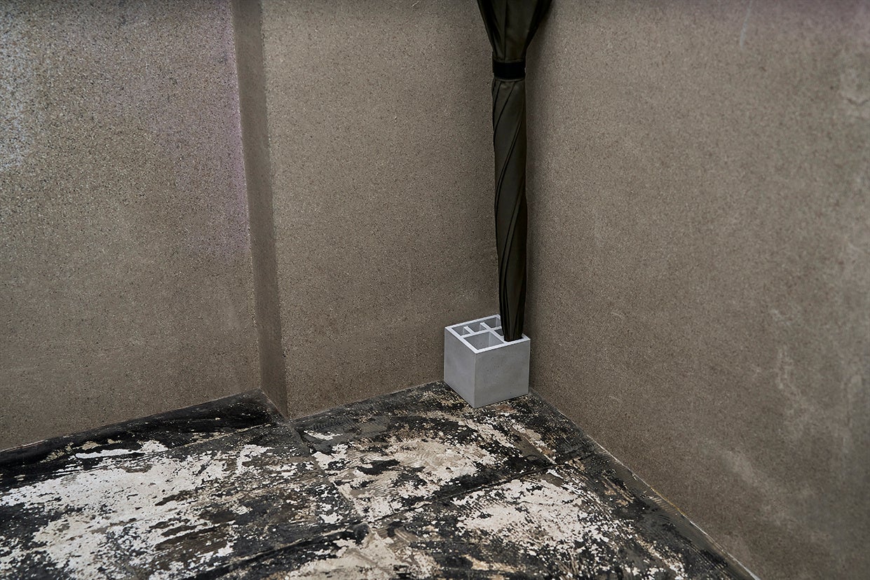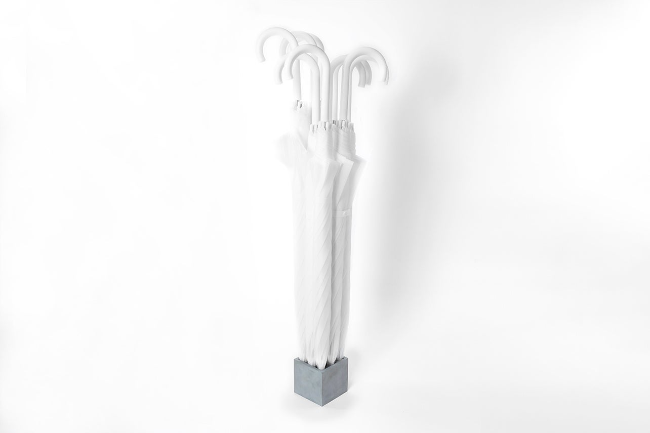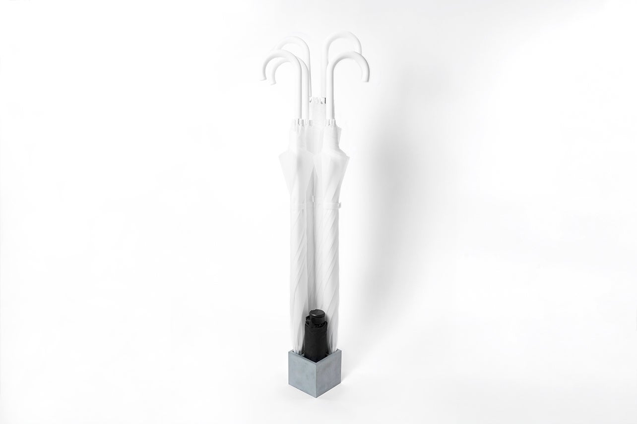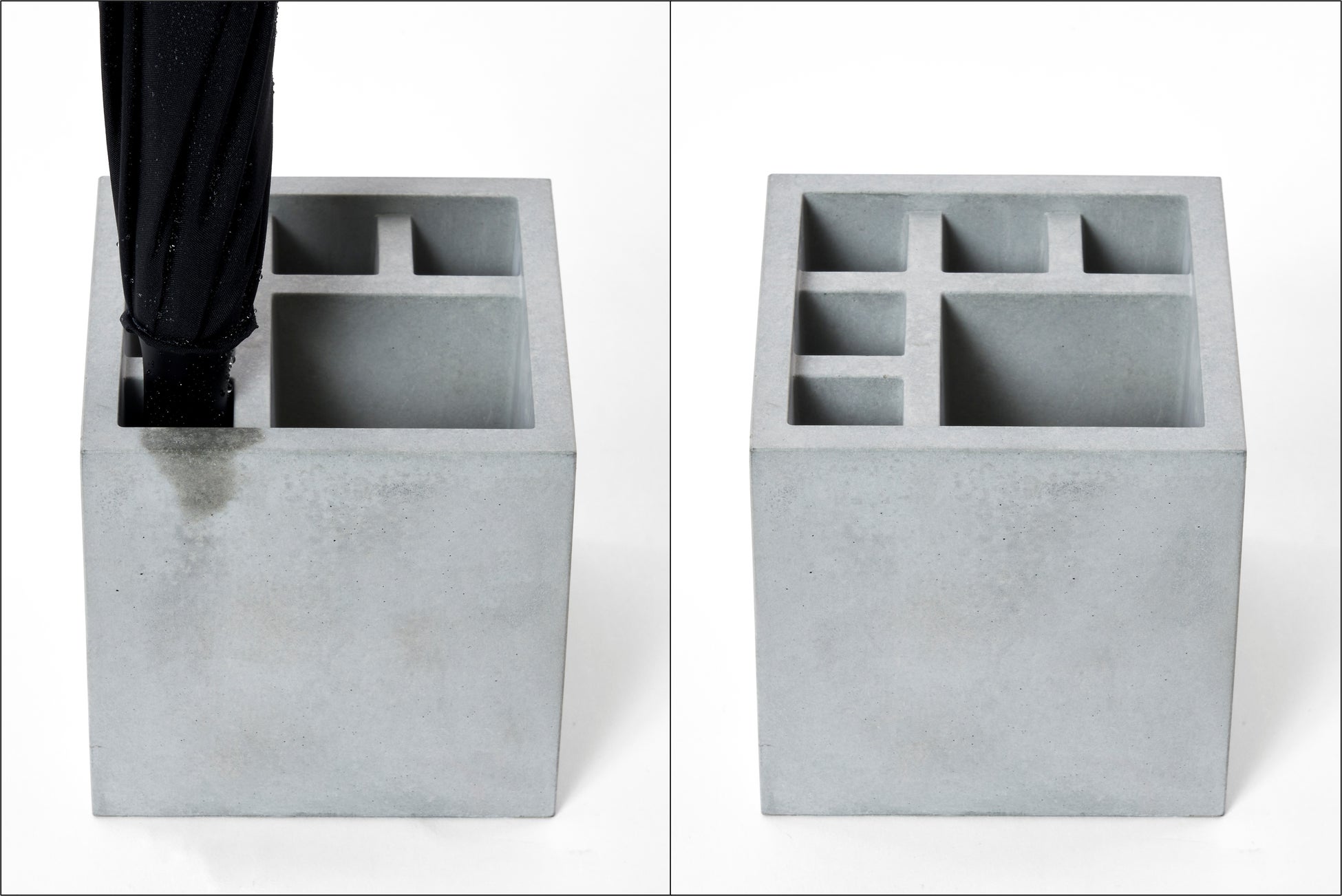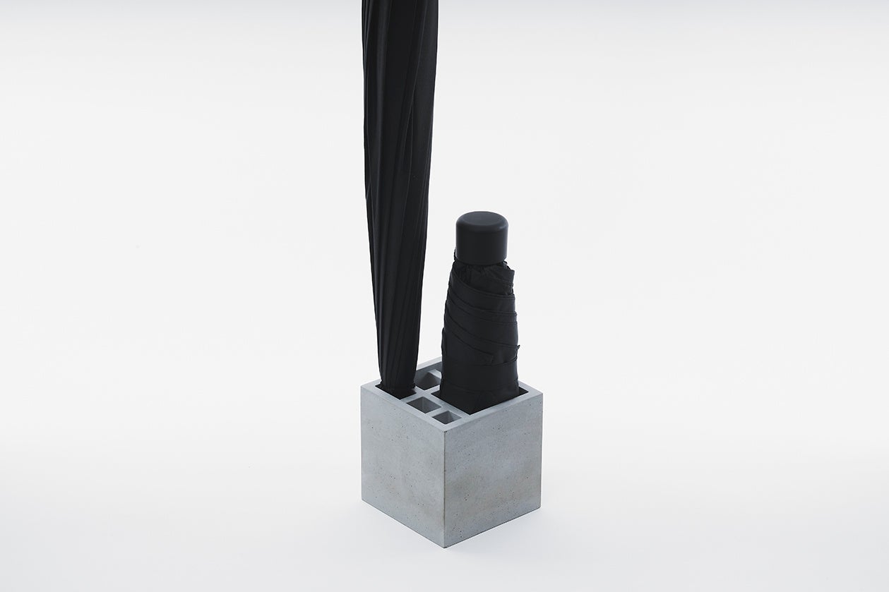 ただそこにあるだけで美しい、キューブでコンパクトなモルタル製傘立て