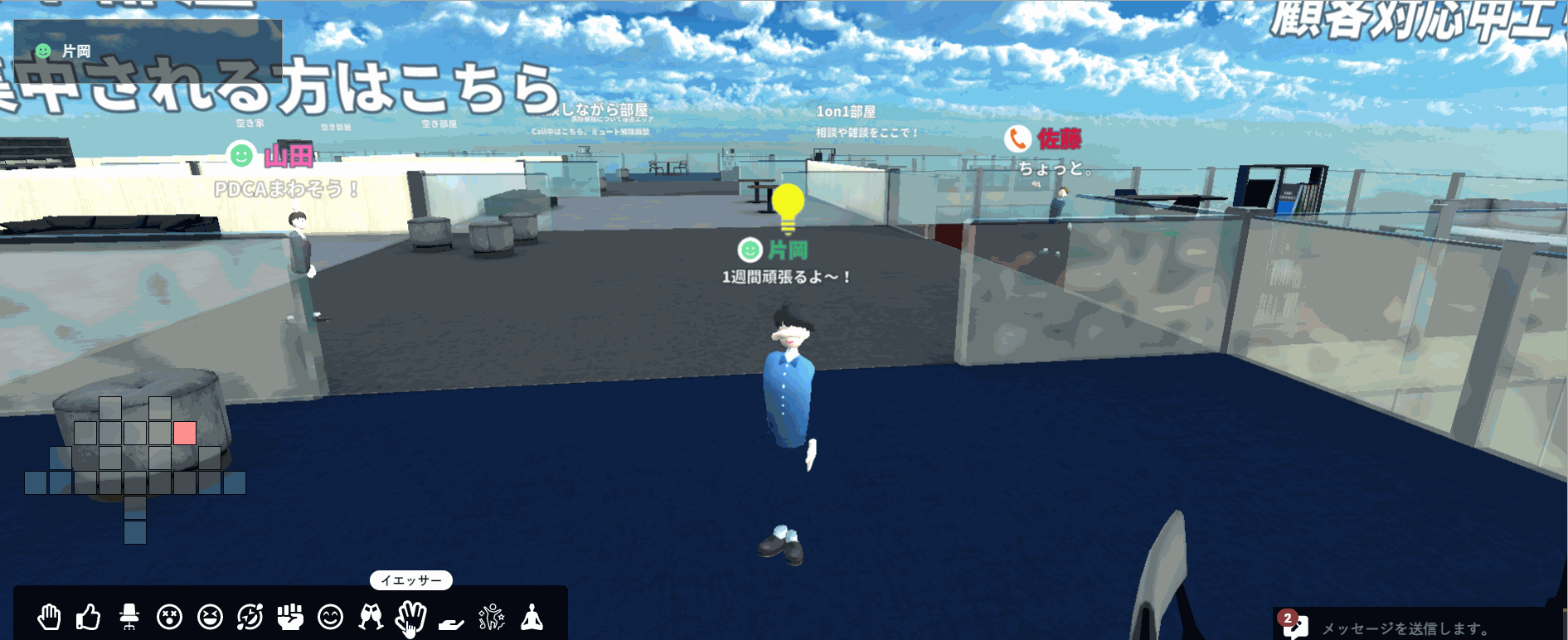 ・会話のON/OFFがなく、アバターで近づくだけでコミュニケーションが開始できる気軽さ。