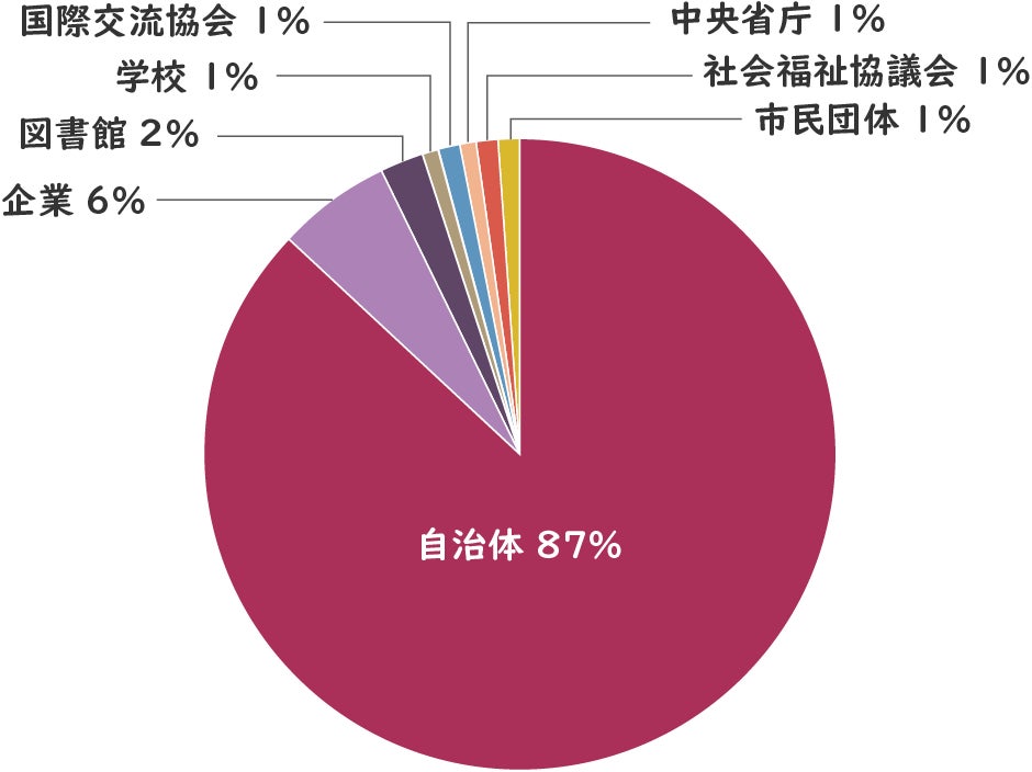 ※自治体(市区町村の役所など)への導入が圧倒的に多く、全体の87%を占めています。