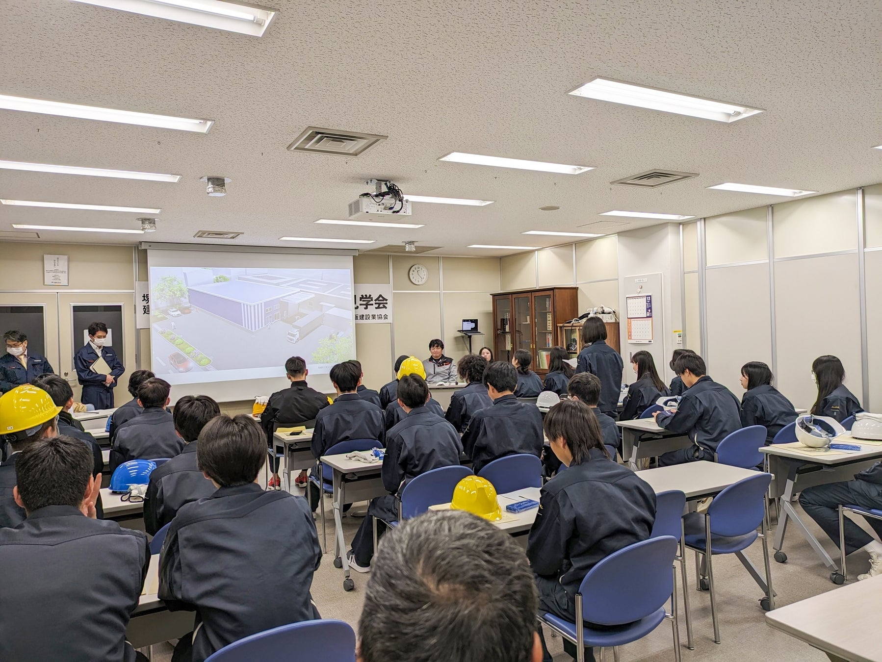 今回の見学会で現場を体験し現場監督から直接話を聞き、建設業への理解を深め働くイメージを持つことにより、働くことに対するポジティブな学び、企業や職業における理解を高め、高校生の主体的な進路決定の一助となることを目指しています。