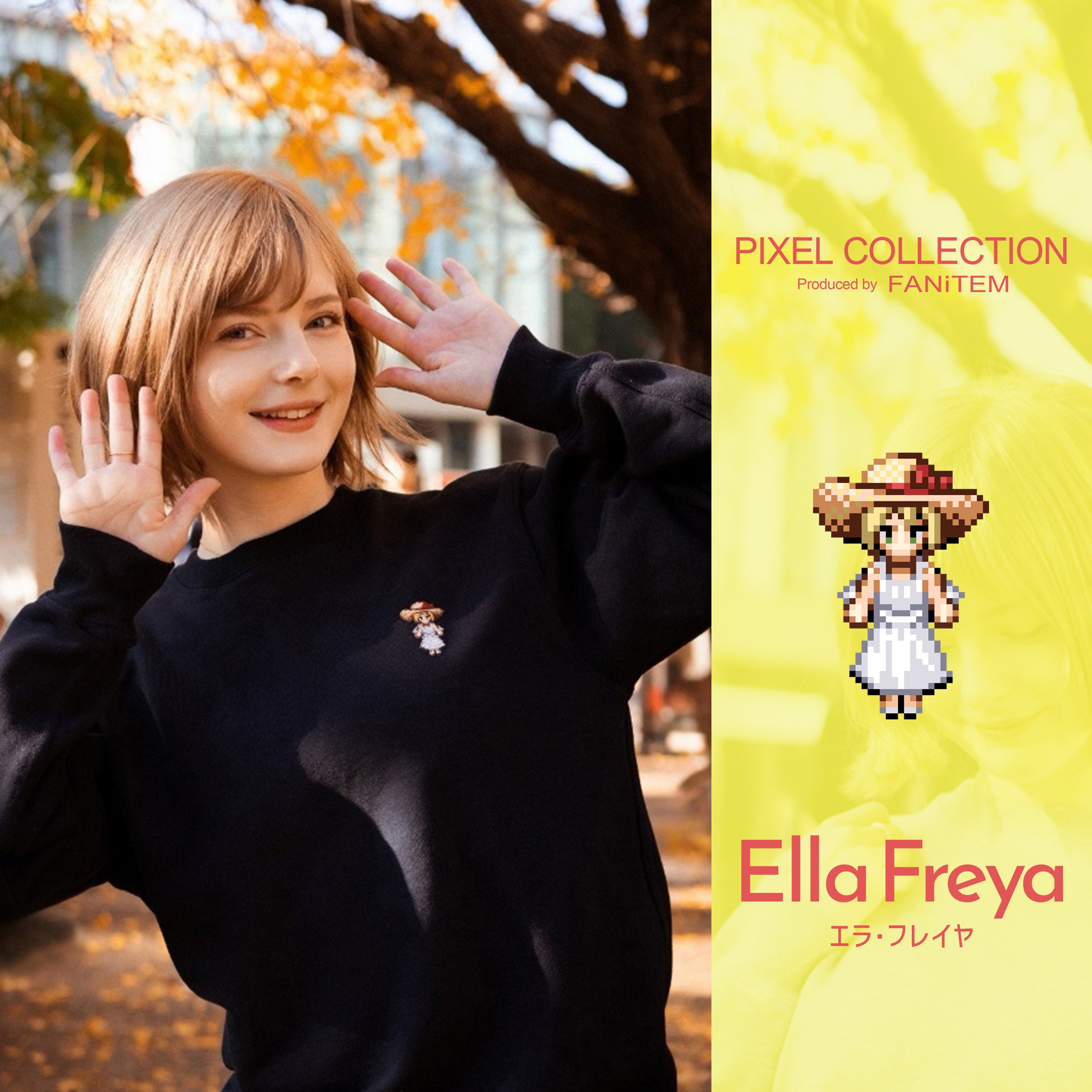 「FANITEM(ファニテム)」より、SNS総フォロワー数300万人超のオランダ人YouTuber エラ・フレイヤのグッズとしてドット絵の刺繍スウェットが登場しました。公式サイトでの初回受注期間は2025年1月15日(水)迄となっています。