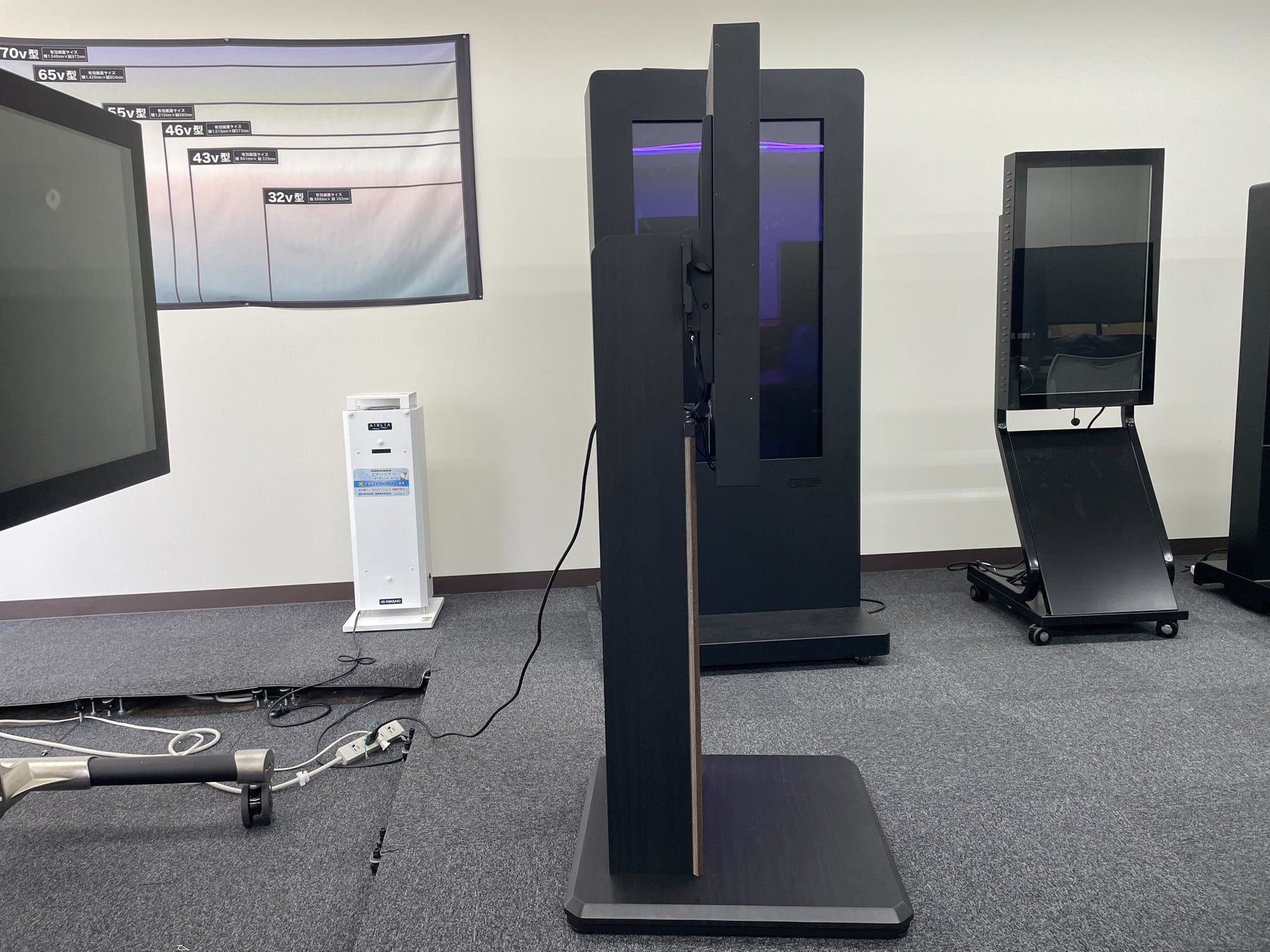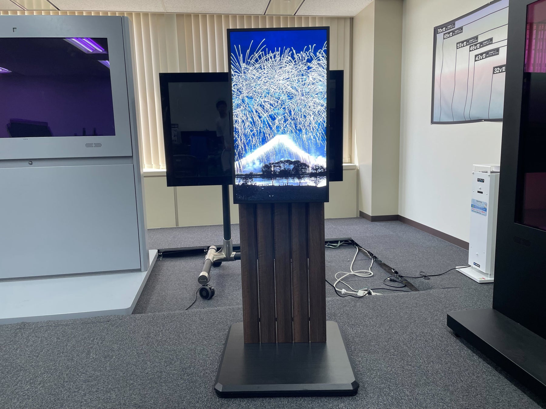 下記型番の朝日木材加工製 AVAWOOD 袴シリーズのデジタルサイネージスタンドを展示し、