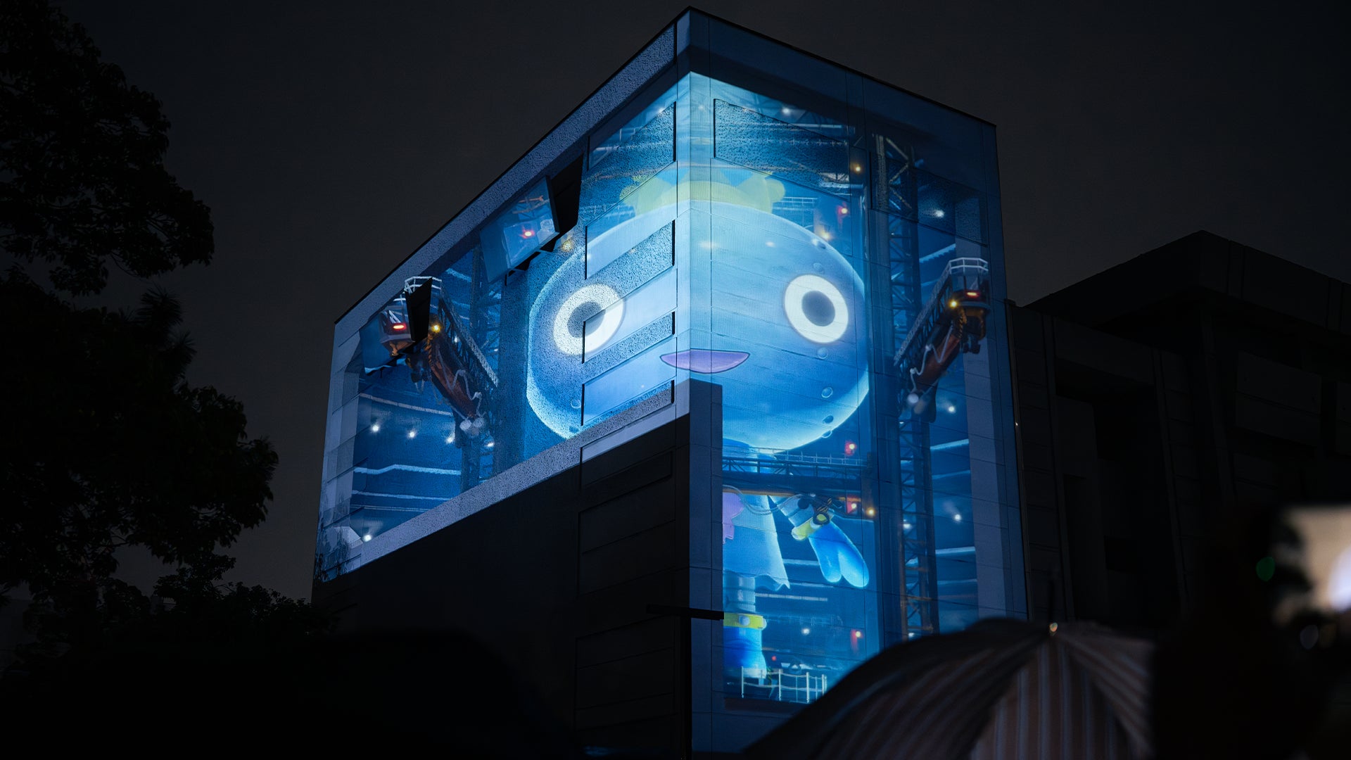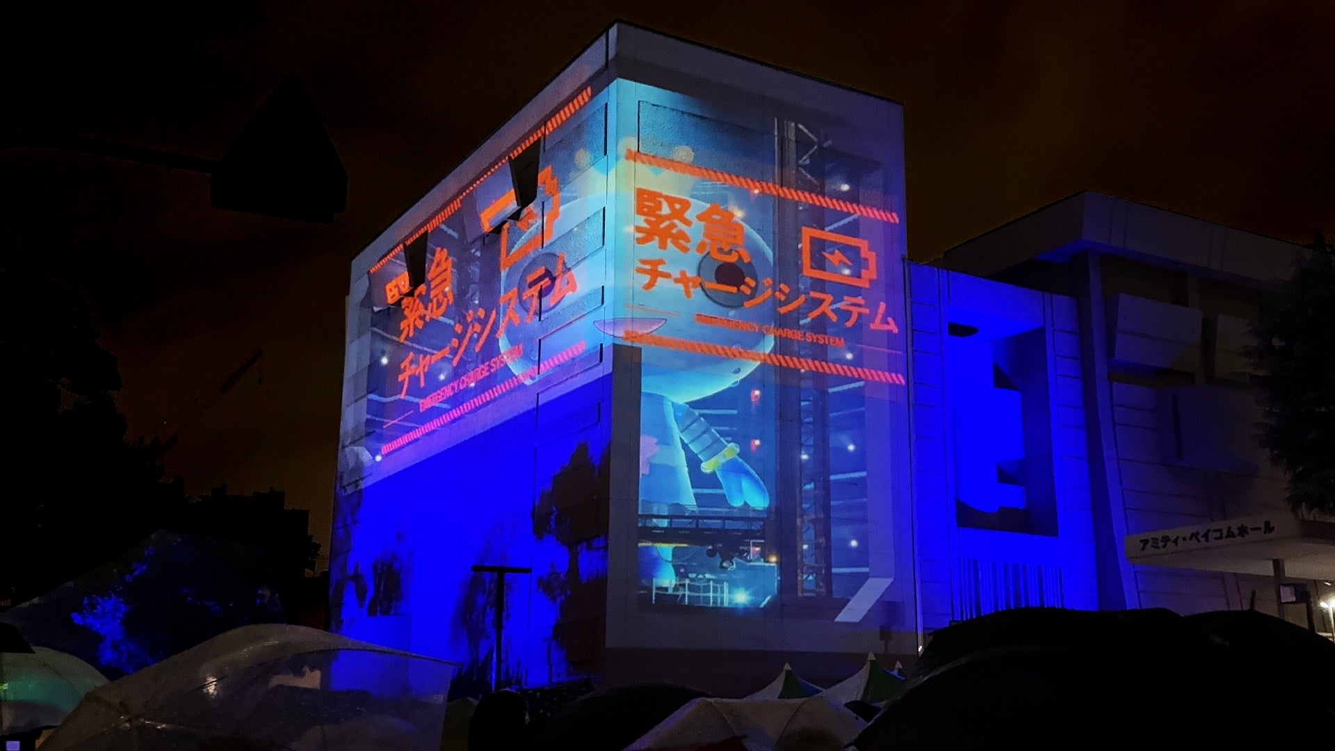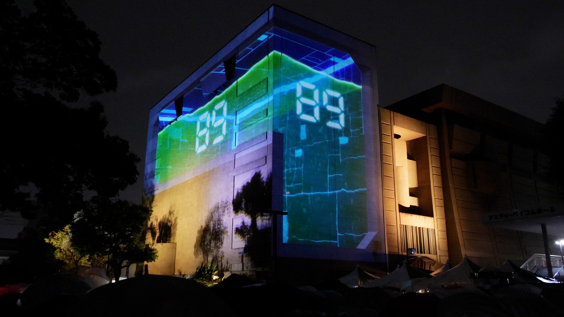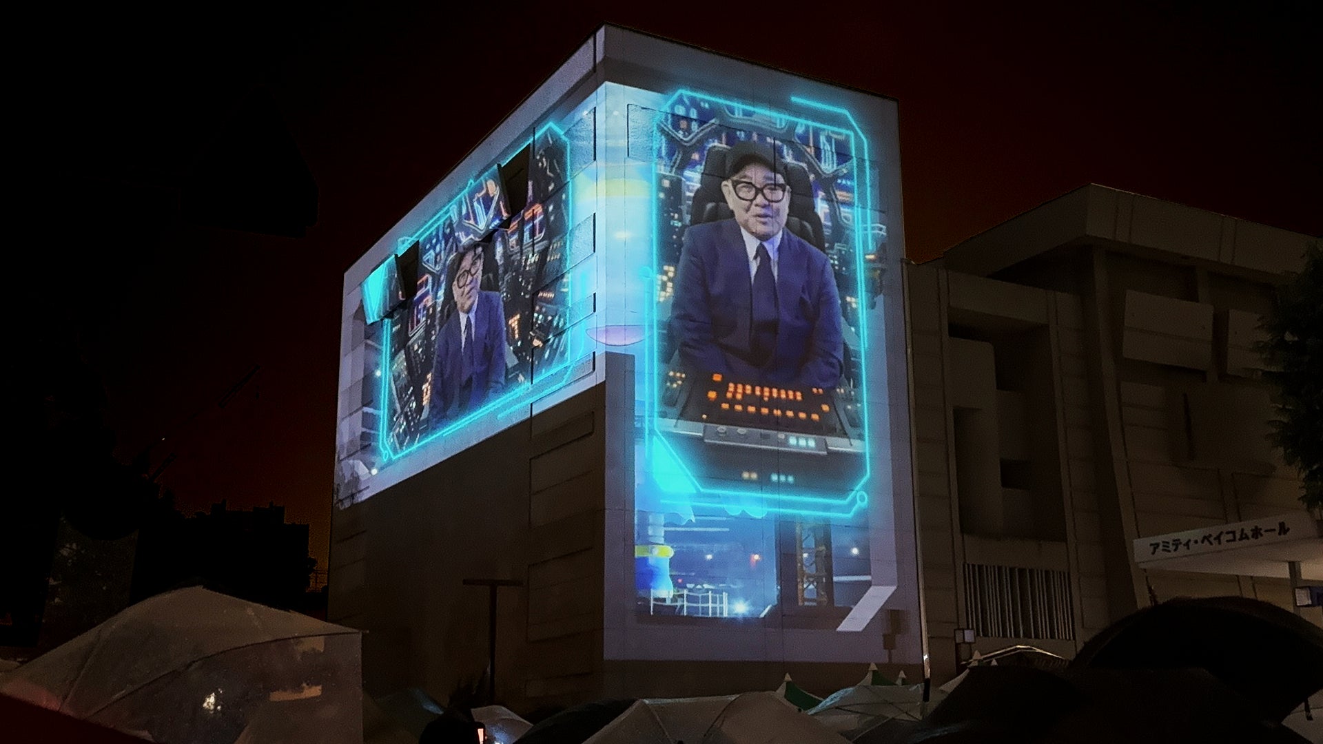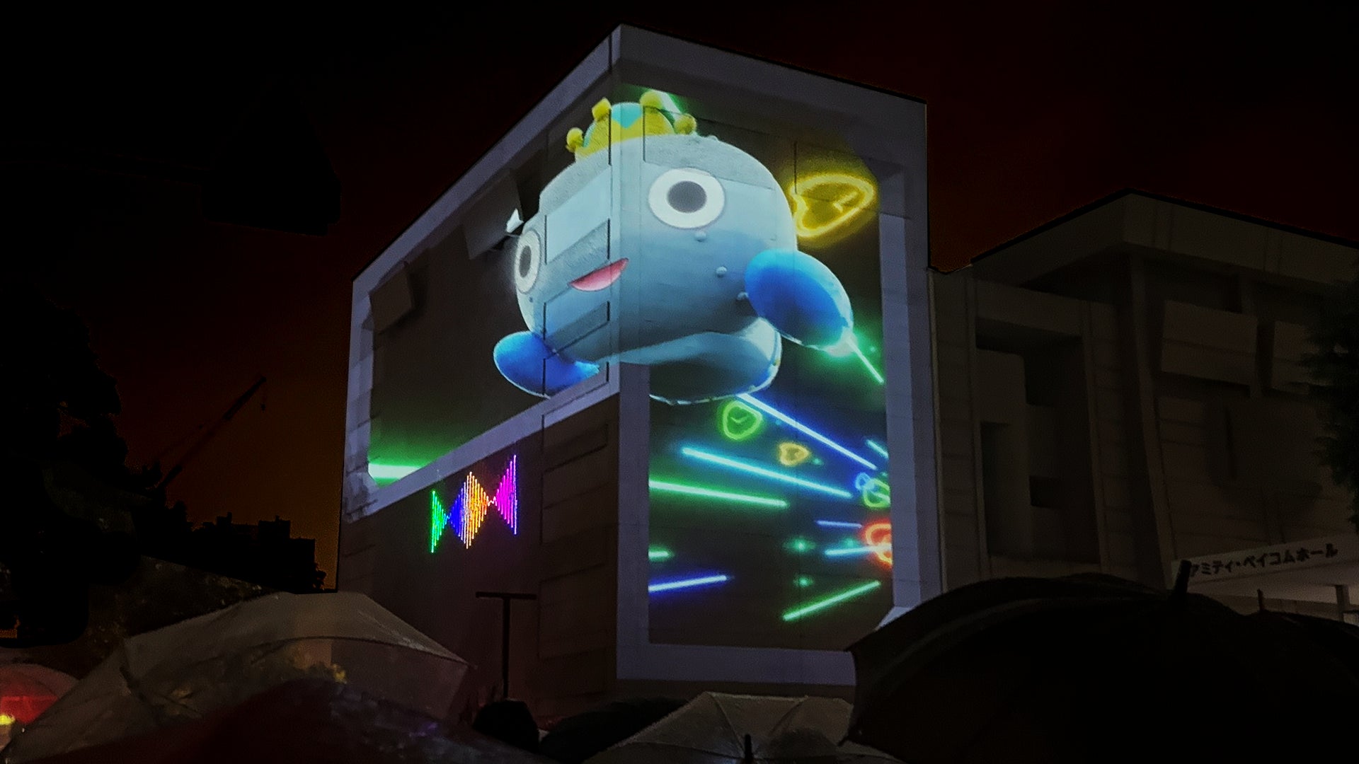 西宮市民会館(アミティ・ベイコムホール)東側・北側壁面に映像投影