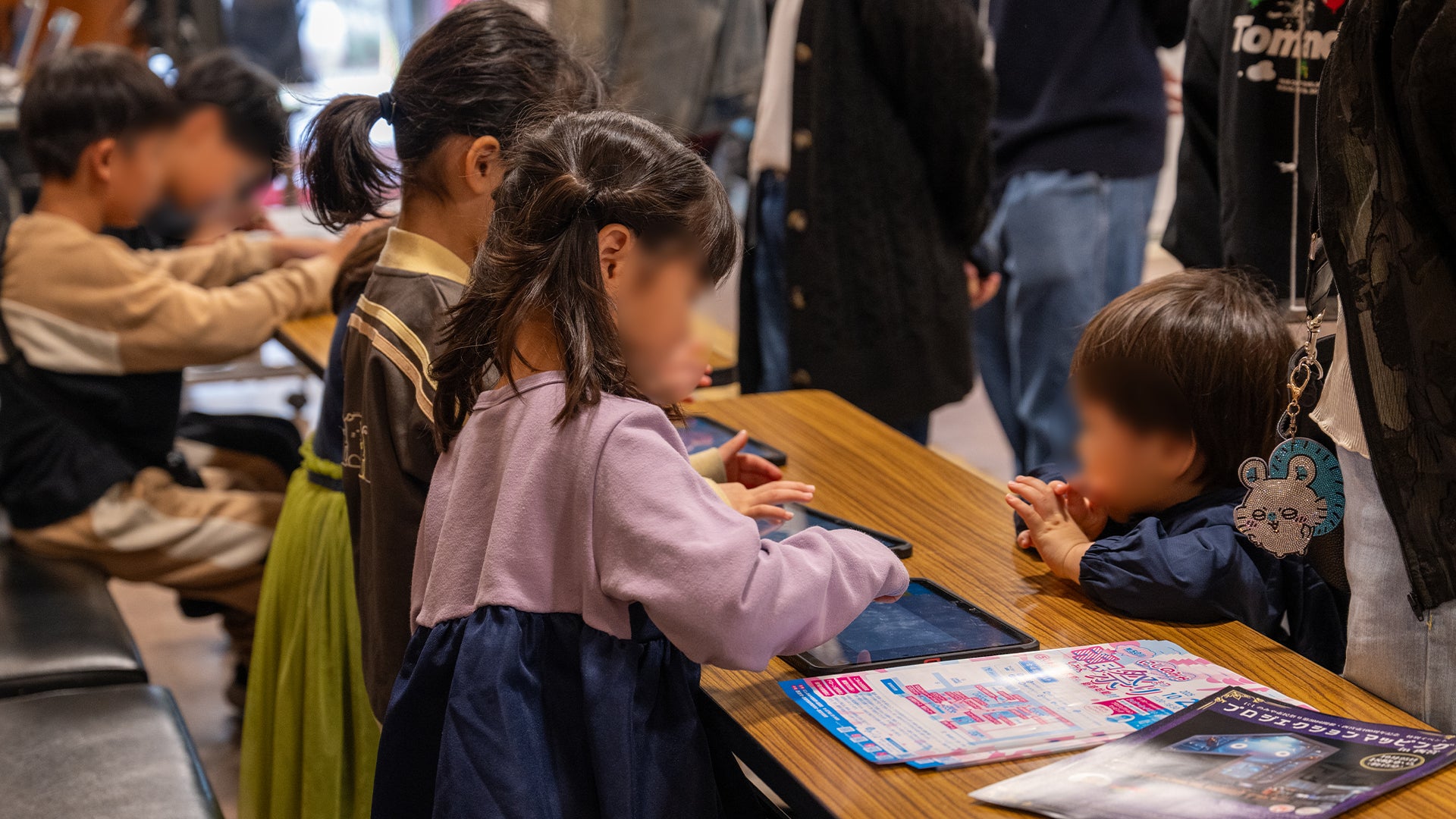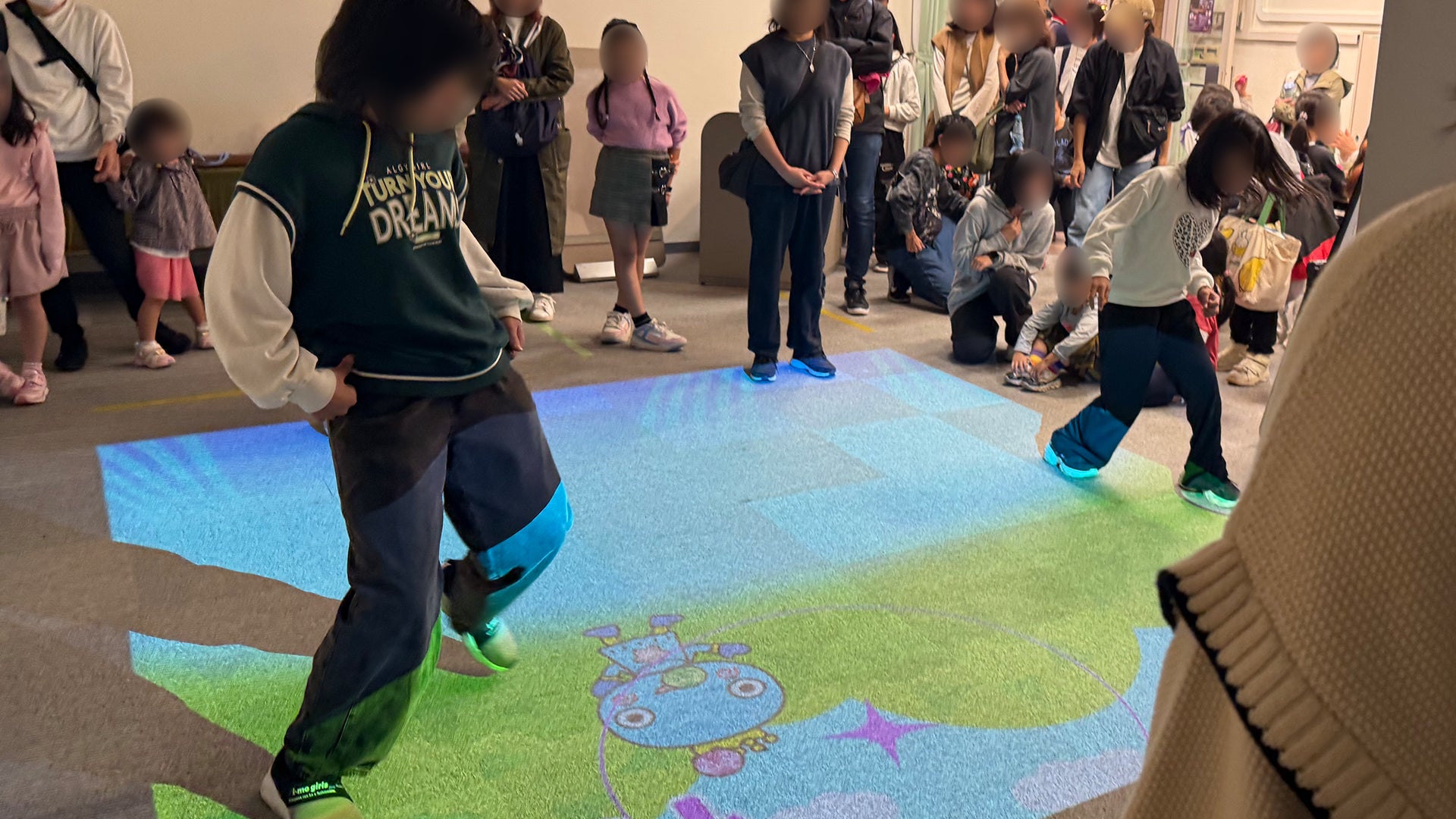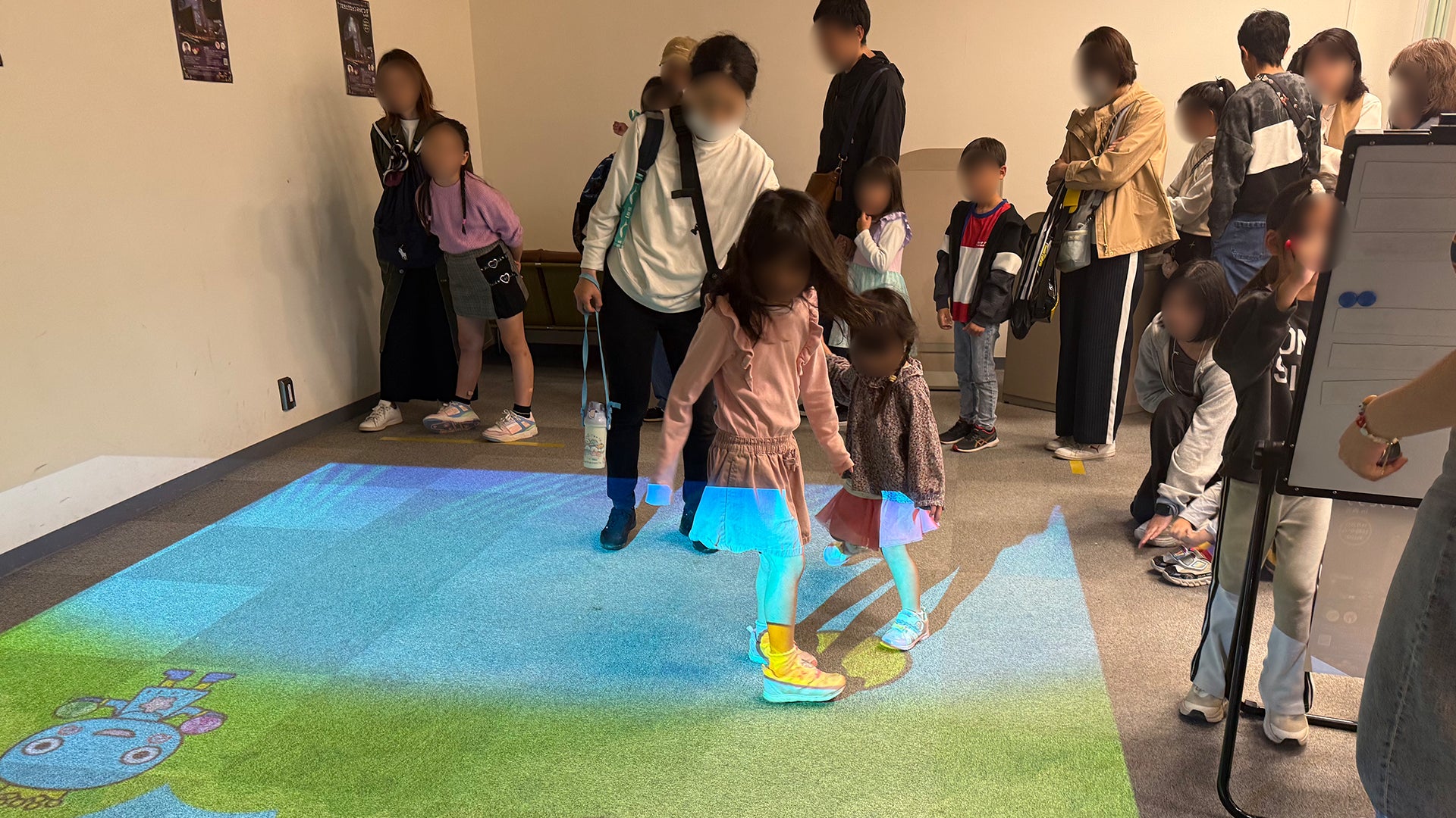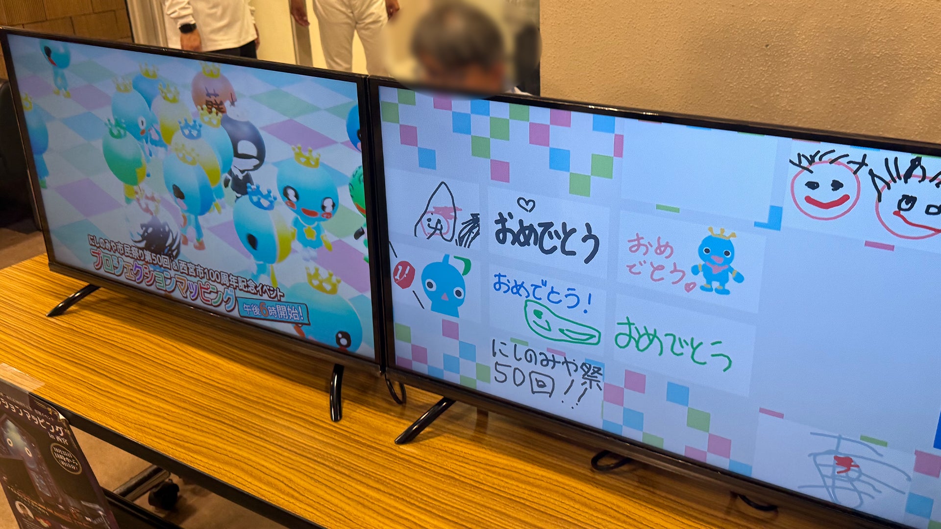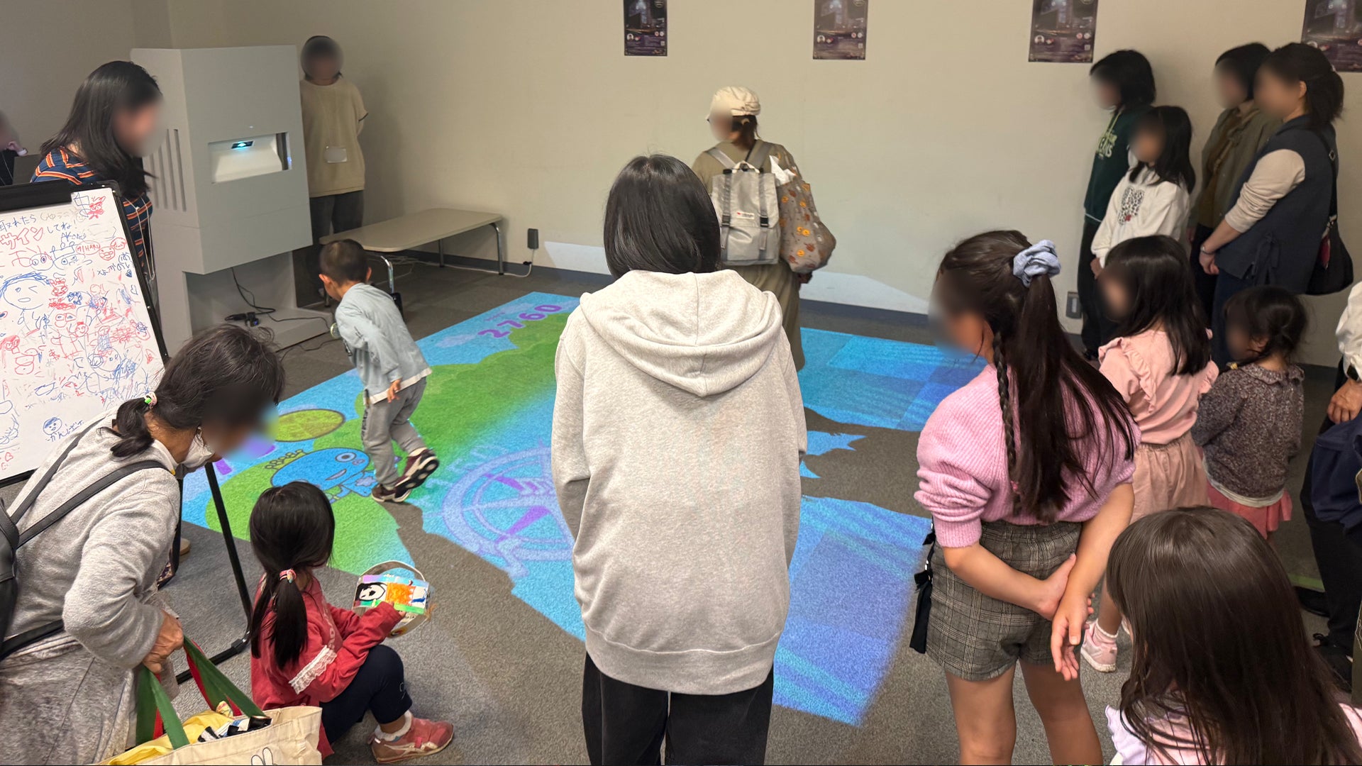 また、西宮市民会館内では、子どもコーナーの一角にデジタルブースを設置。(株)スピードオリジナルコンテンツ、タブレットでみやたんの塗り絵をすると3Dになって動き出す『お絵描きみやたん』や、足元に投影されたプレイエリアで、移動や足踏みをして楽しむゲーム『アシンキング』みやたんバージョンを実施。親子や友達同士などでの協力プレイも可能で、高得点を競い合った。