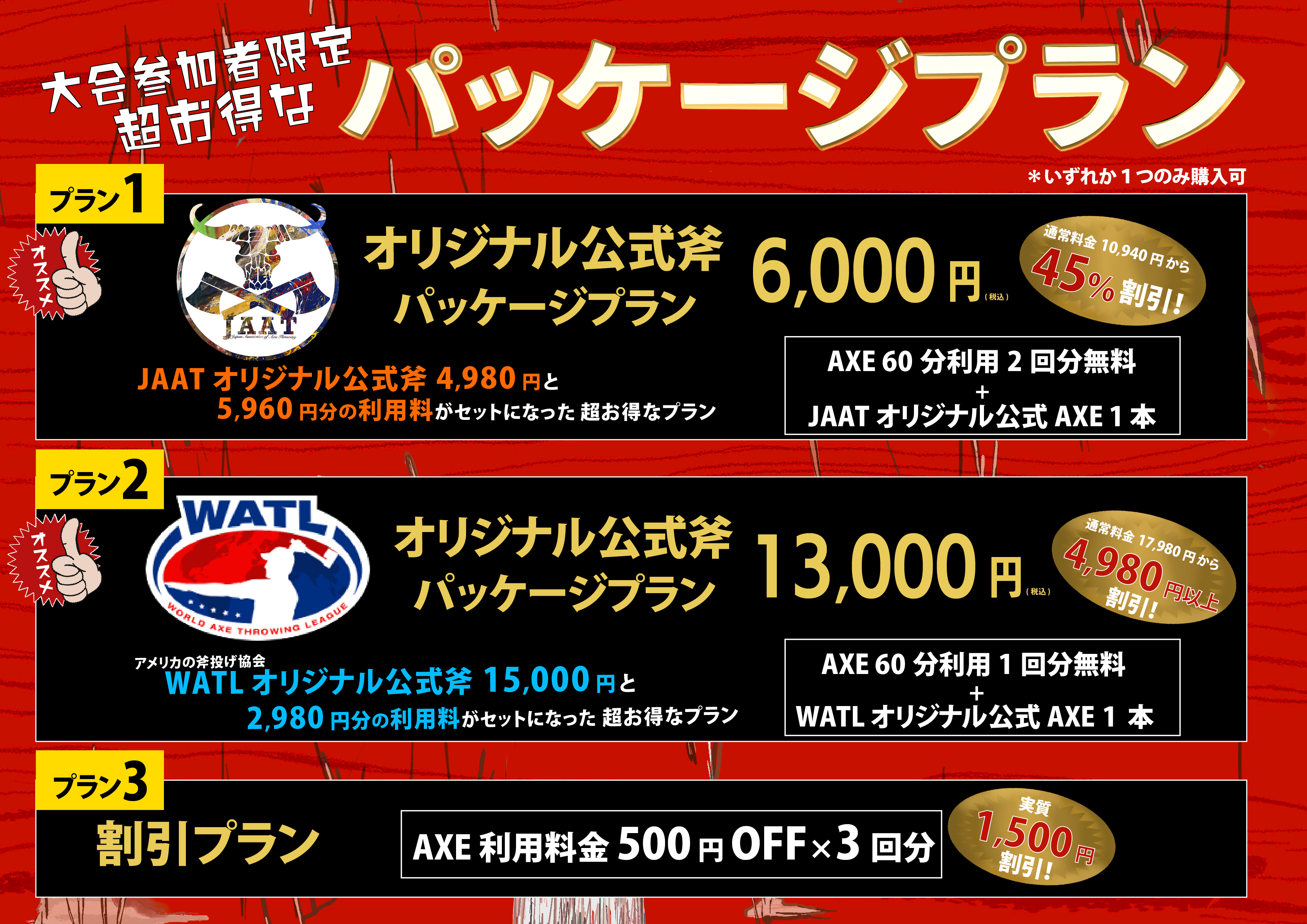 ▷JAATオリジナル公式斧4,980円と5,980円分のAXE THROWING利用料がセットになった超お得なプラン