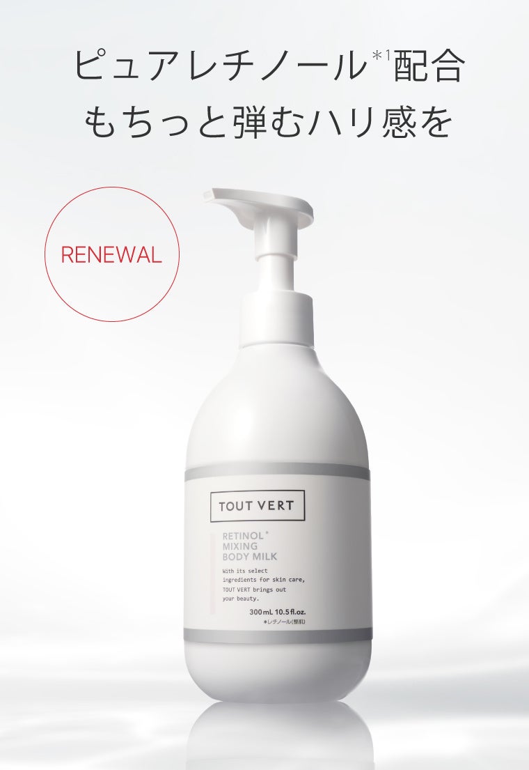 成分研究を究める化粧品メーカーのトゥヴェールは、鮮度にこだわったピュアレチノール(純粋レチノール)(*1)配合の本格エイジングケア(*2)ボディミルク「レチノミルク」を、リニューアル発売いたしました。