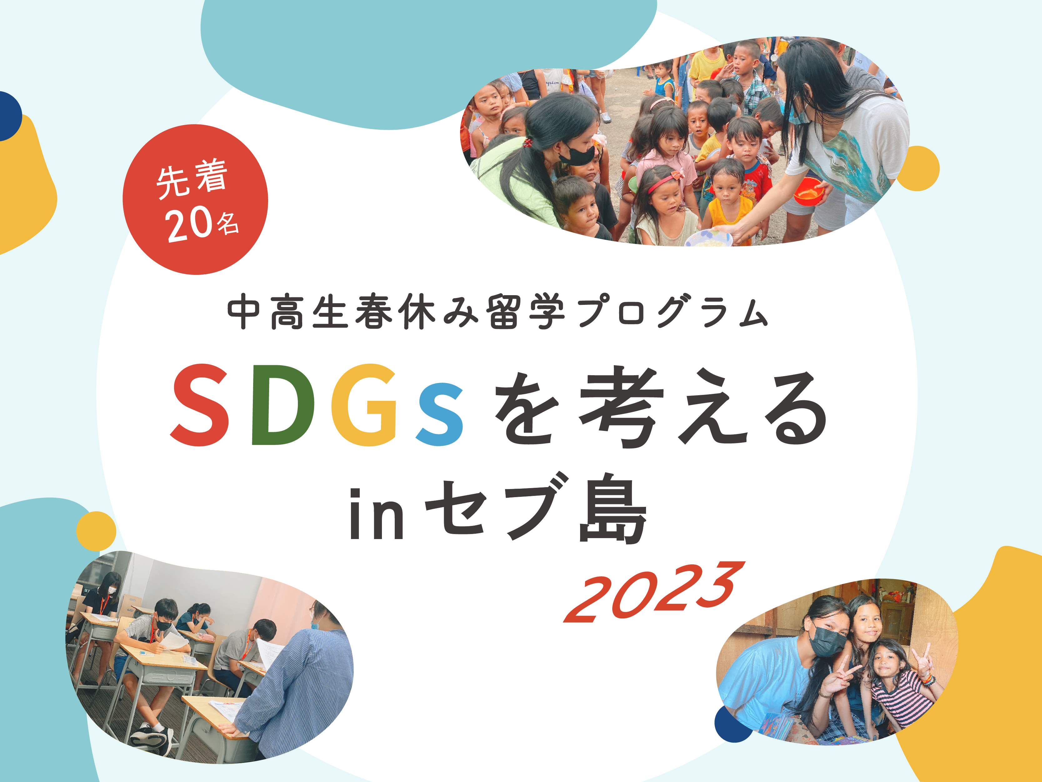 「1億総留学社会へ」をブランドフィロソフィに掲げ、留学サービス「スマ留」を展開する株式会社リアブロード(本社:東京都新宿区 代表取締役:神田慎)は、中高生春休み留学プログラム「SDGsを考えるinセブ島 2023」の販売を2022年10月13日より開始したことをお知らせいたします。本プログラムを通じて学生がフィリピンの貧困問題について考えるきっかけをつくると共に、短期間で効率良く英語学習が可能なマンツーマン授業を提供し、英語力の向上も目指します。