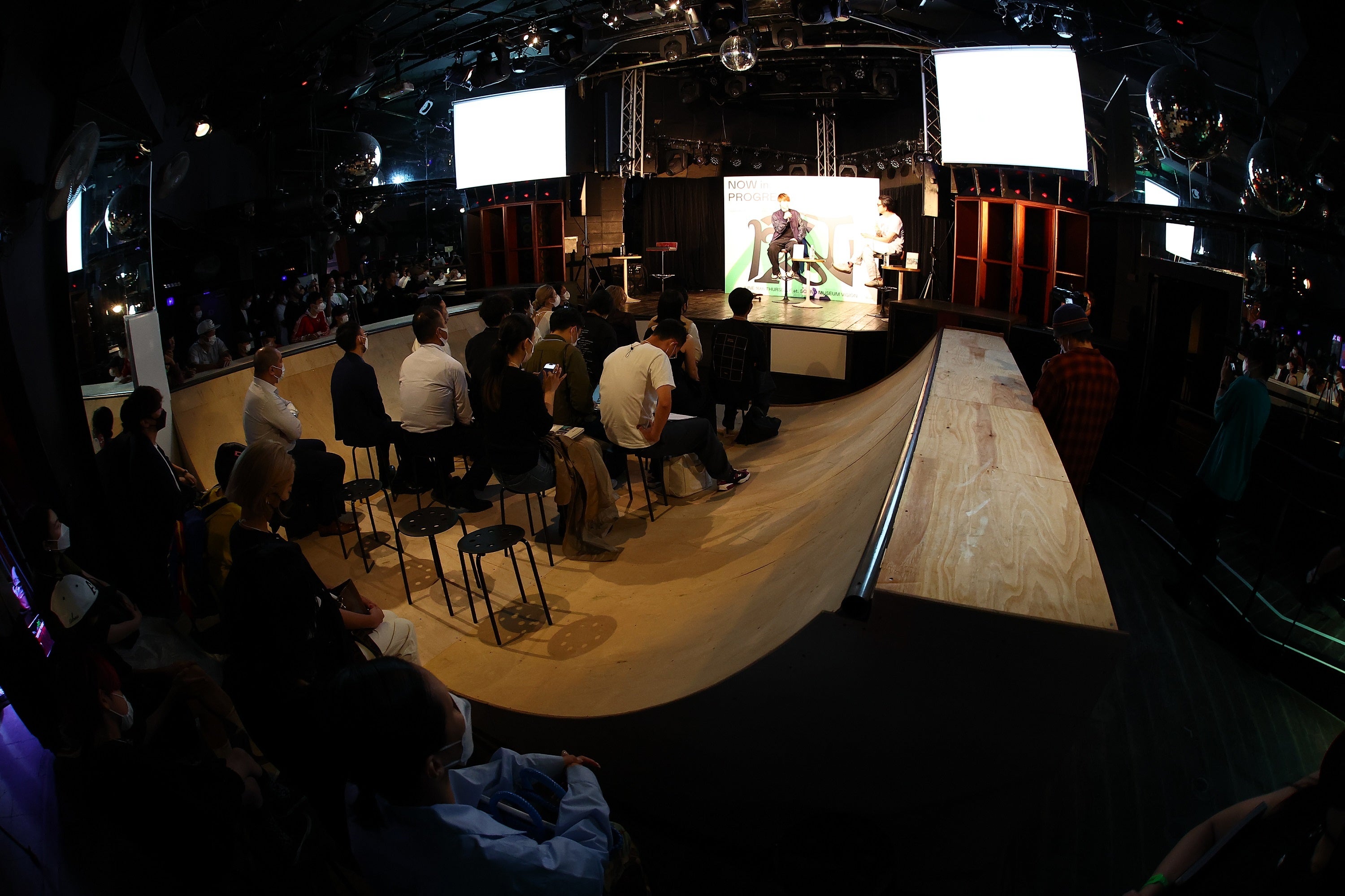 イベントでは、堀米選手の未来の目標や、環境・エネルギーの課題などについてトークショーを行いました。また、会場に設置されたスケートボードランプでは、キッズスケーターと堀米選手がスケートボードセッションを行いました。