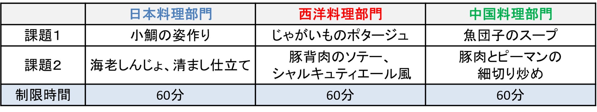 ・出場者 :地区大会通過者計61人(日本料理部門21人、西洋料理部門25人、中国料理部門15人)