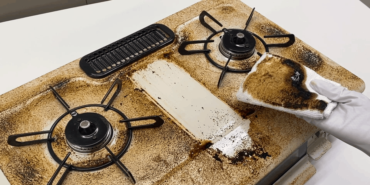 こびりついたコンロの頑固な油汚れも
