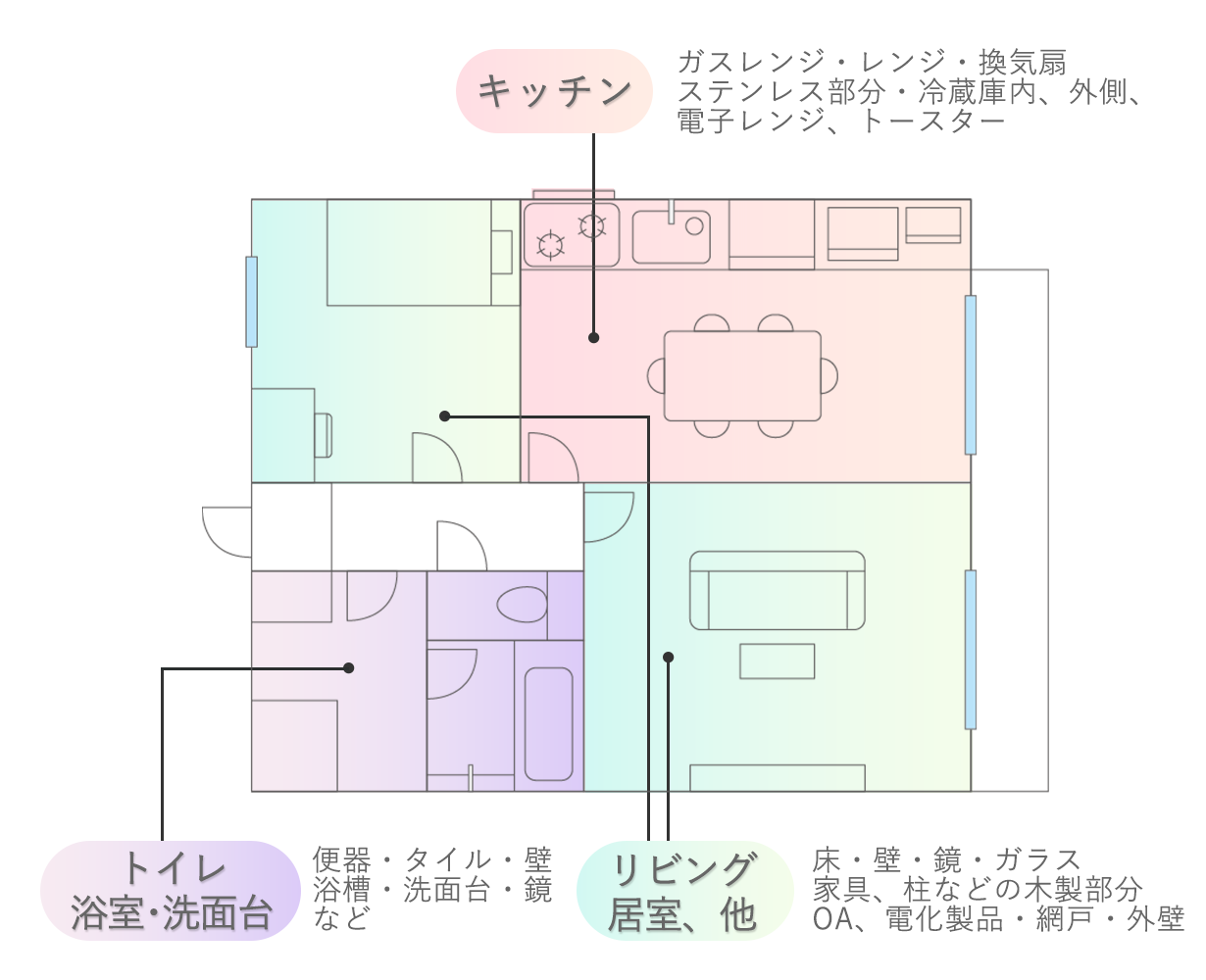 - 頑固な汚れにサッとスプレーして拭きとるだけ。家じゅう使える万能クリーナー