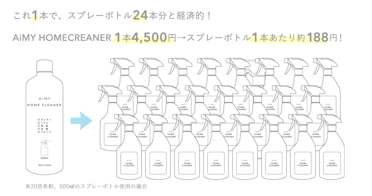 AiMY HOME CLEANER1本4,500円→スプレーボトル1本あたり約188円!