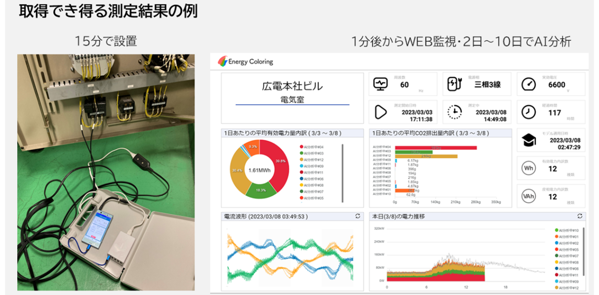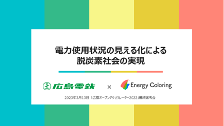 この課題を解決するため、エナジーカラリングのスマホ1台で電力用途を可視化し、データサイエンス的アプローチを可能とするサービスと省エネノウハウを提供し、広島電鉄沿線の事業者の省エネ支援を通じて脱炭素化をめざします。