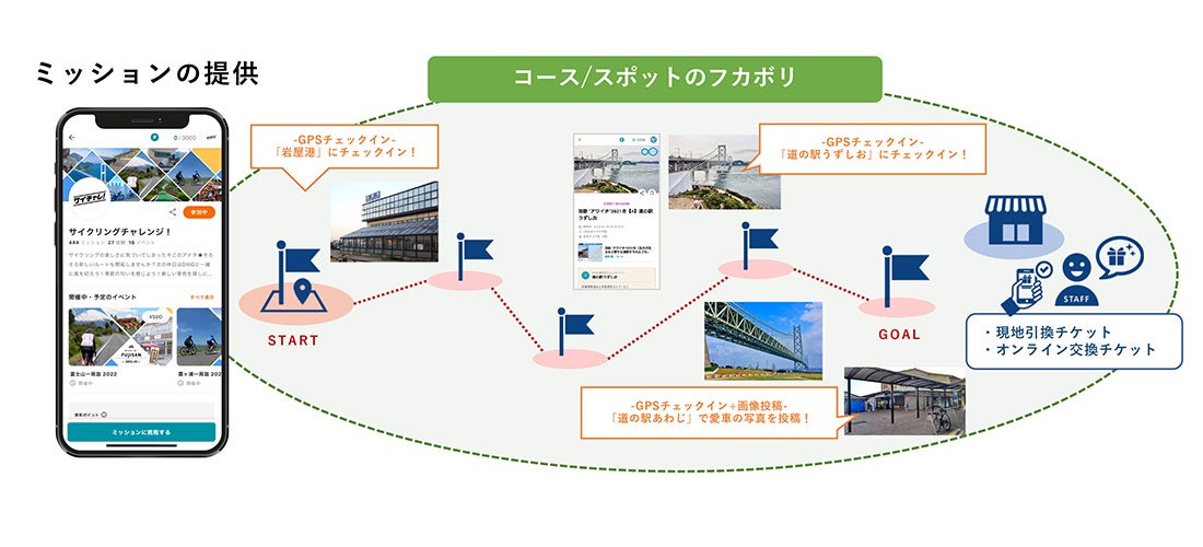 株式会社DIIIG(本社:神戸市、代表取締役社長:秋國寛)が開発、運営するミッションアプリ「DIIIG(ディグ)」が、株式会社感じる伊賀(本社:三重県伊賀市西高倉)主催のサイクリングイベント「おいしい参加賞が選べる!『伊賀いち』お披露目走行会」に採用されました。指定のスポットを巡り、アプリ内でミッションをクリアするとオリジナルの「完走証」と、ご当地グルメがもらえます。この取組は伊賀上野観光DMOが主催する「まちづくり企画塾第3期」で企画が発案され、観光庁『地域独自の観光資源を活用した地域の稼げる看板商品の創出事業』に採択された事業です。