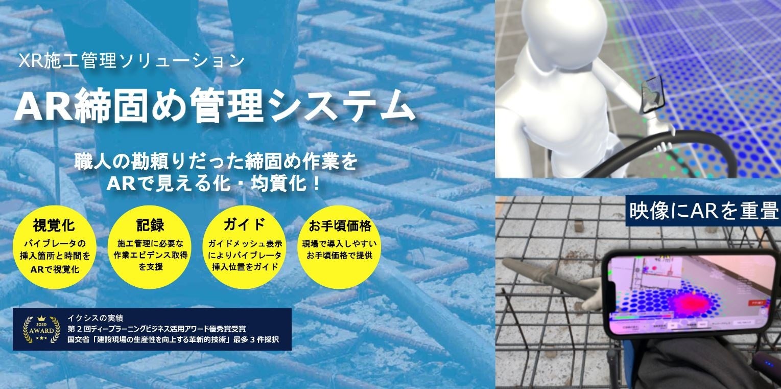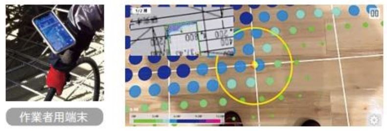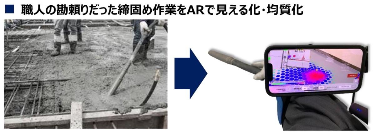 本サービスは、これまでは職人の勘頼りだったコンクリート締固め作業をARで視覚化し、人によって作業結果にばらつきが出ないよう作業の均質化を実現したサービスです。