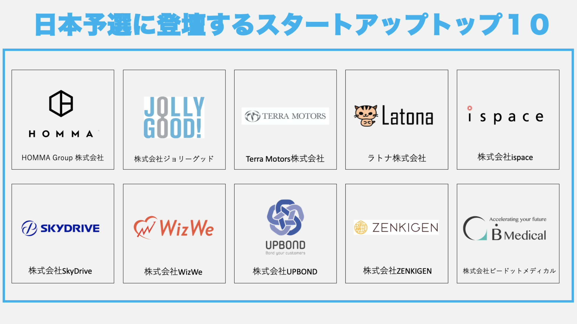 今回の日本予選には200社を超えるスタートアップから応募があり、その中で書類選考を突破した10社がファイナリストとして、7月21日(木)にグランドハイアット東京にて開催される日本予選に登壇いたします。