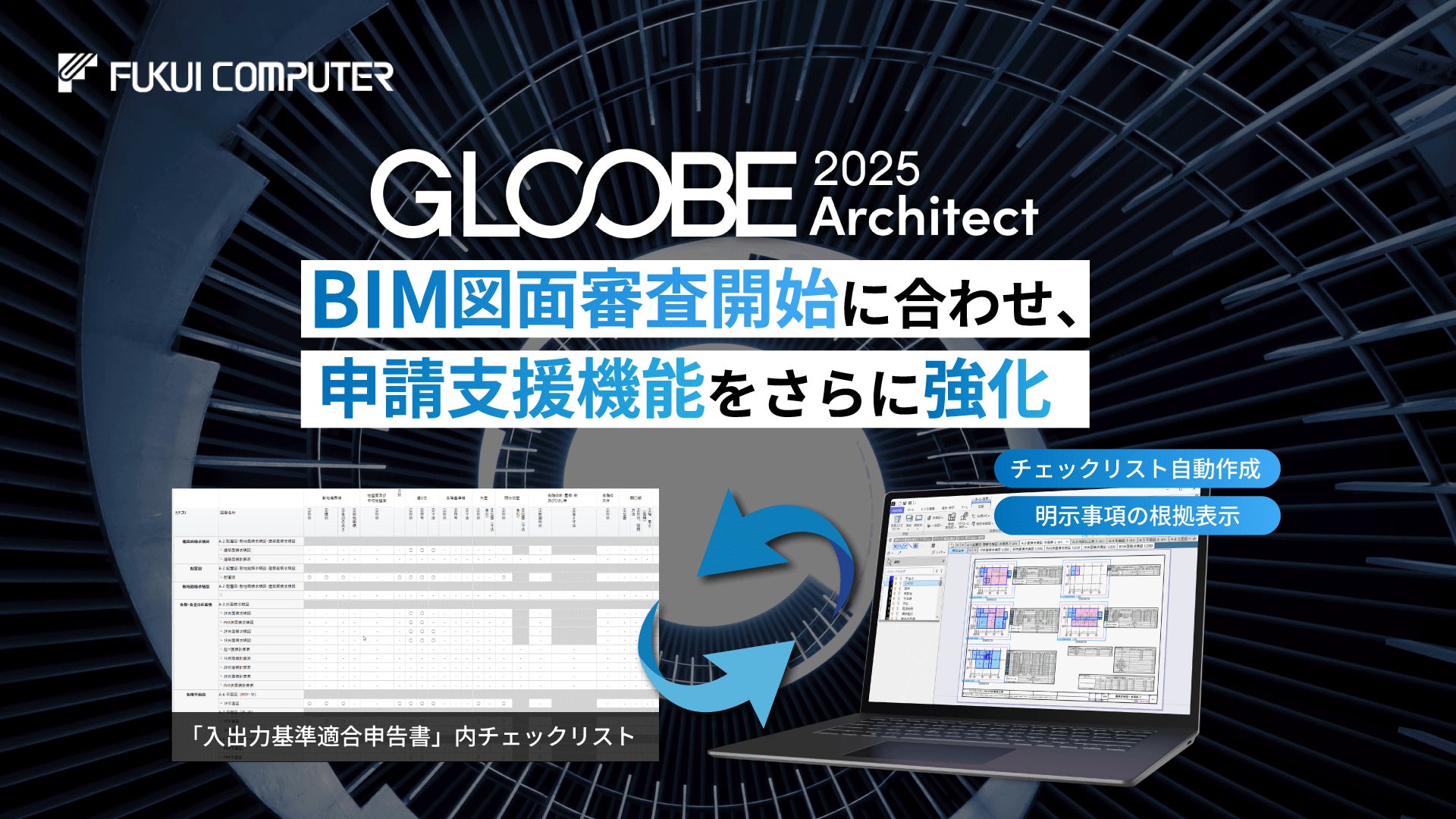 福井コンピュータアーキテクト株式会社(本社:福井県坂井市、代表取締役COO:坪田 信)は、BIM建築設計支援システム「GLOOBE 2025 Architect」において、BIM図面審査の2026年4月本格開始に合わせ、設計・申請業務を大幅に効率化する最新アップデートを、2026年4月8日より提供開始いたします。