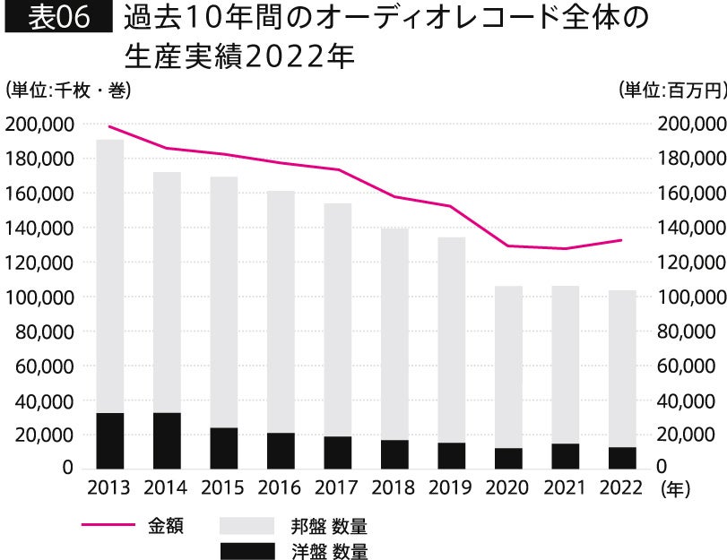 ※表06. 過去10年間のオーディオレコード全体の生産実績2022年