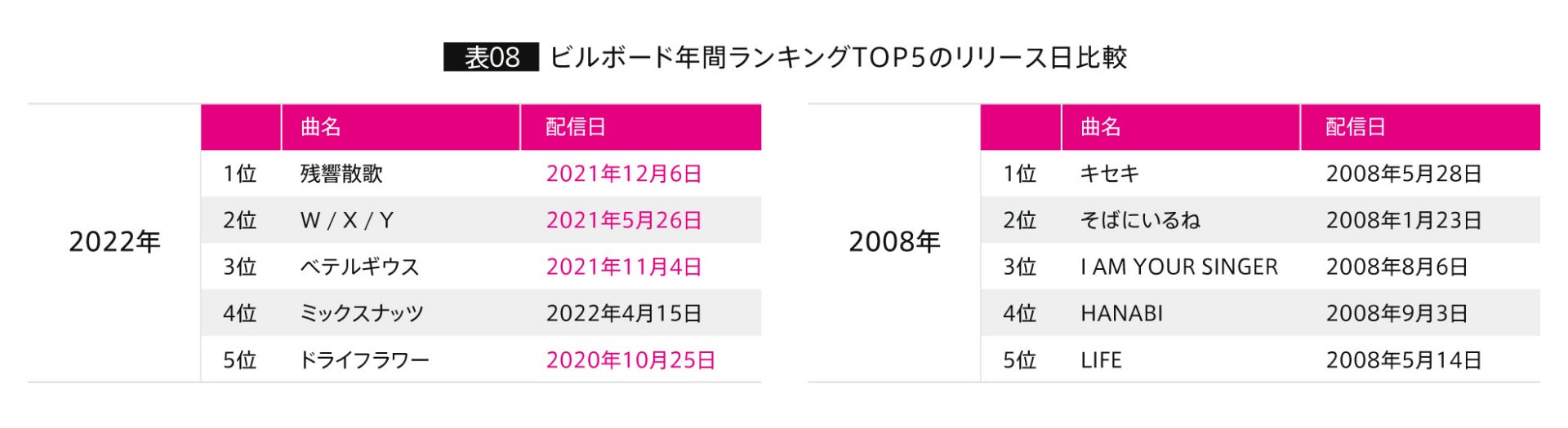 ※表08. ビルボード年間ランキングTOP5のリリース日比較