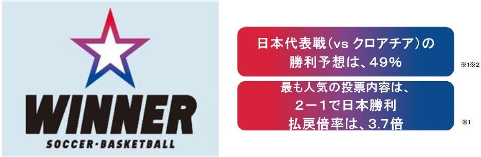 ※2 「WINNERサッカー1試合予想」のうち、日本代表が勝利する投票内容(No.1~No.7)に投票された割合の合計です。