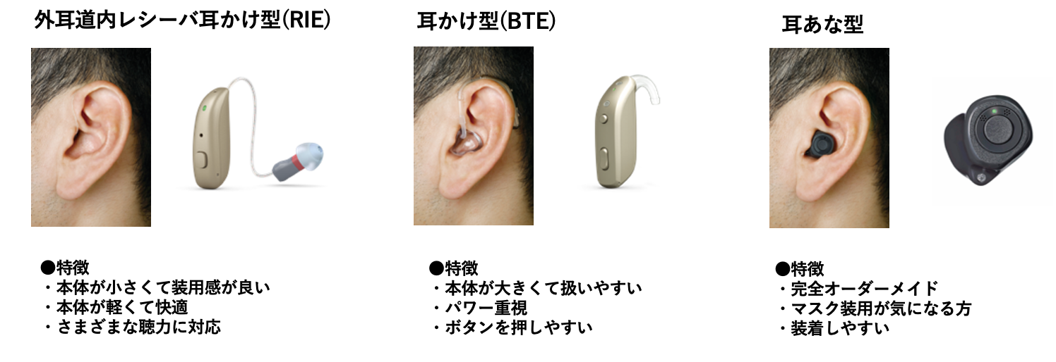 補聴器の形状には大きく分けて、耳かけ型と耳あな型があります。見た目だけでなく、それぞれ特徴があるので耳の形や操作のしやすさ、聴力の状態に合わせて選ぶことが可能です。最新補聴器「リサウンド・ビビア™」「リサウンド・サビー™」に加え、「リサウンド・ネクシア™」を含め、様々な形を取り揃えており、聞き取りづらいと感じる騒がしい環境下でも周囲の音を聞き逃すことなく、聞きたい音に集中でき、音の細部までクリアに届きます。